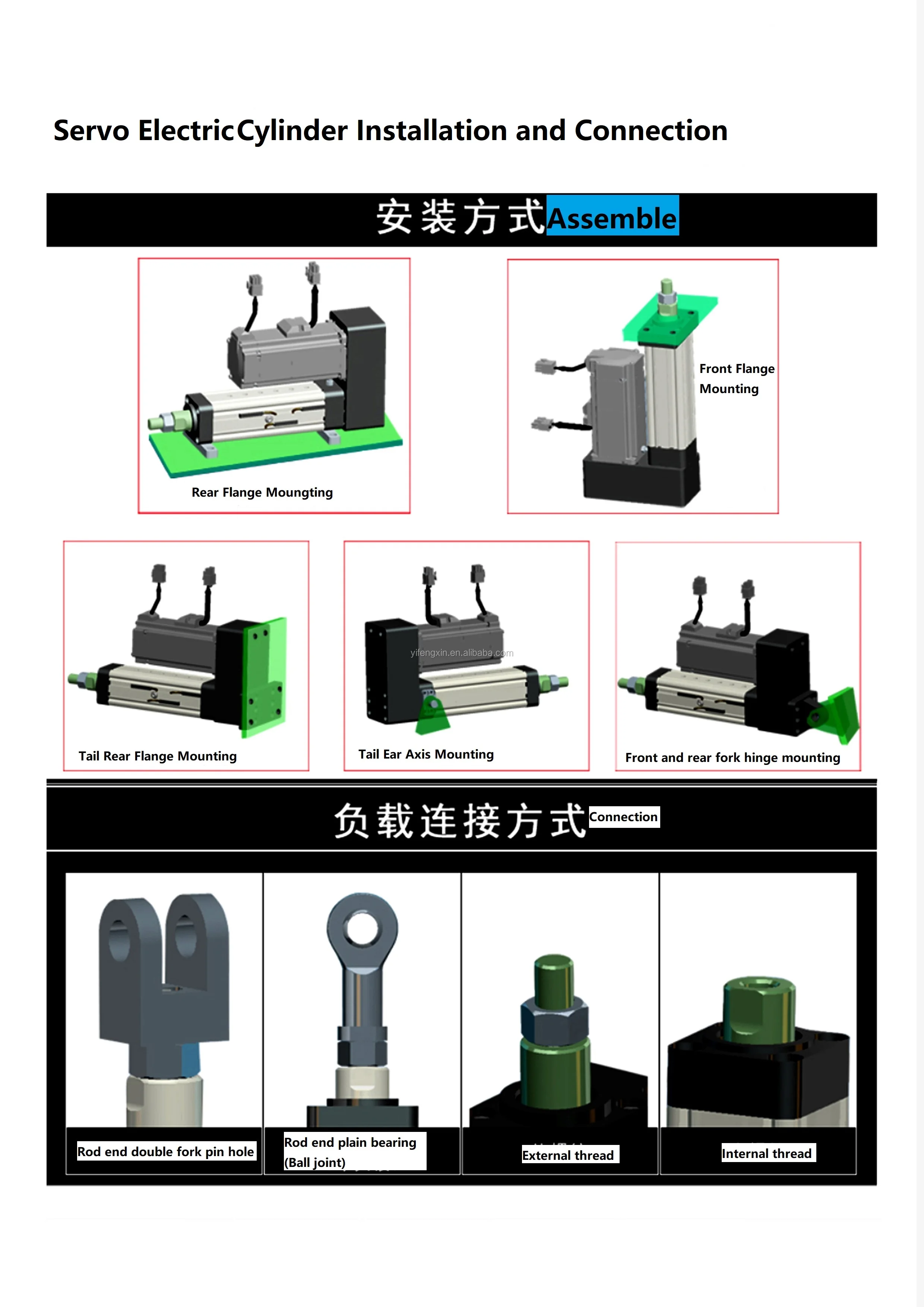 Advantages of our servo electric cylinder: 1. Low noise, low energy consumption, more energy-saving, high rigidity, high impact resistance, long service life, basically maintenance free; 2. flexible configuration, various installation configurations are provided; 3. multi-point positioning and multi-stage speed control can be realized.