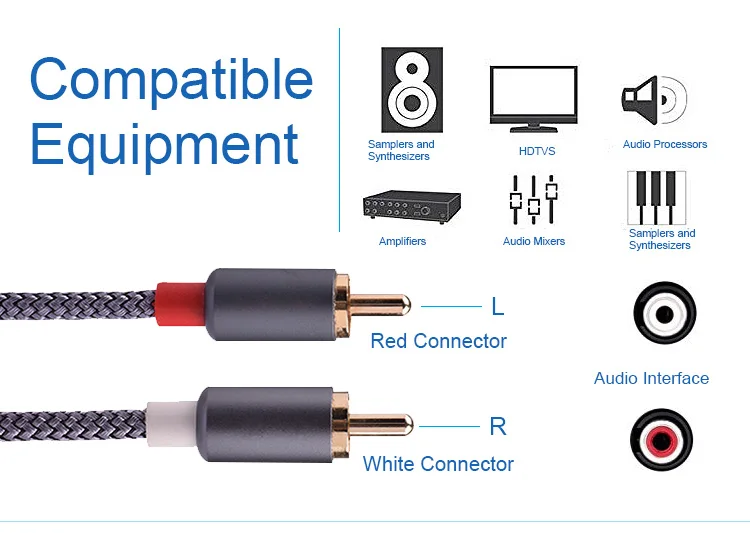 2)(braided by nylon, 2M) AUX CABLE : Sanyconn 2 male RCA to 2-plug RCA cable can easily connect a smartphone, tablet or MP3 player to a speaker, stereo receiver or other RCA-enabled device.