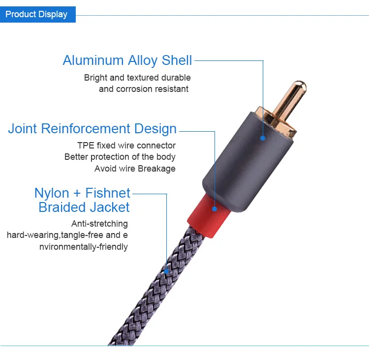 Production Description for 2M Grey Nylon and Fishnet 2 RCA To Twin 2 RCA Audio Cable For Hi-Fi Stereo Audio Kabel
