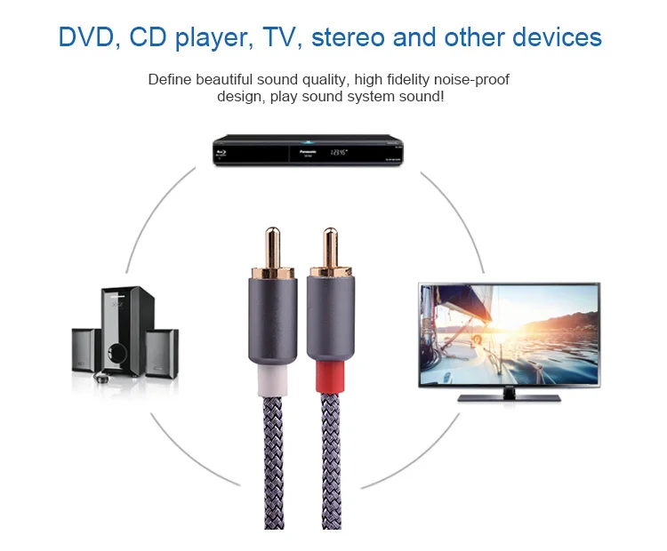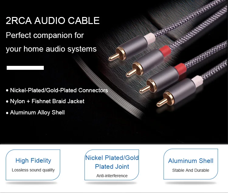 1)Premium Hi-Fi sound quality for music: the 2RCA AUX to 2 RCA cable has a corrosion-resistant gold-plated RCA plug and high-quality polished metal plug, not only seamless, clear and high-quality transmission of the stereo, but also consistent reliability and minimal signal loss.