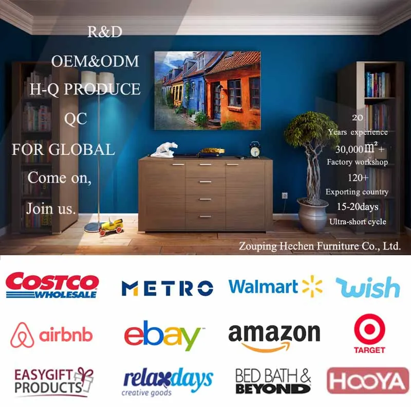 Zouping Hechen Furniture Co., Ltd. (factory production and foreign trade processing and manufacturing company) was established in 2017. Its predecessor is Shandong Lanlin Furniture Co., Ltd., with 20 years of furniture manufacturing experience. The factory is located in one of the five largest furniture manufacturing bases in China. City, has the reputation of the first town in Jiangbei furniture manufacturing. The factory specializes in the production of panel furniture, coffee tables, TV cabinets, cabinets, computer tables, sofas, mattresses, dining tables and chairs and other living, dining, bedroom furniture design, development, production and sales. Since 2017, the company has focused on foreign trade processing and sales, and sold to the United States, Europe, South Africa, South Asia, Australia, the Middle East and other regions. It has a professional design and R&D team to provide customers with OEM and ODM services, and has won unanimous recognition and praise from foreign customers. We are well-known at home and abroad for our best quality products and services. The factory now has a modern production workshop of 10,000 square meters, with an annual production of more than 100,000 sets of furniture, and more than 200 employees working hard to provide each customer with the best quality products and services. After years of development, he has won many honors and titles. He is currently the chairman of Zouping Youth E-commerce Association, executive chairman of Zhoucun Furniture Industry Association, vice chairman of Zhoucun Young Entrepreneurs Association, and Binzhou Top Ten Service Industry Talents. All staff sincerely invite you to cooperate and win-win.