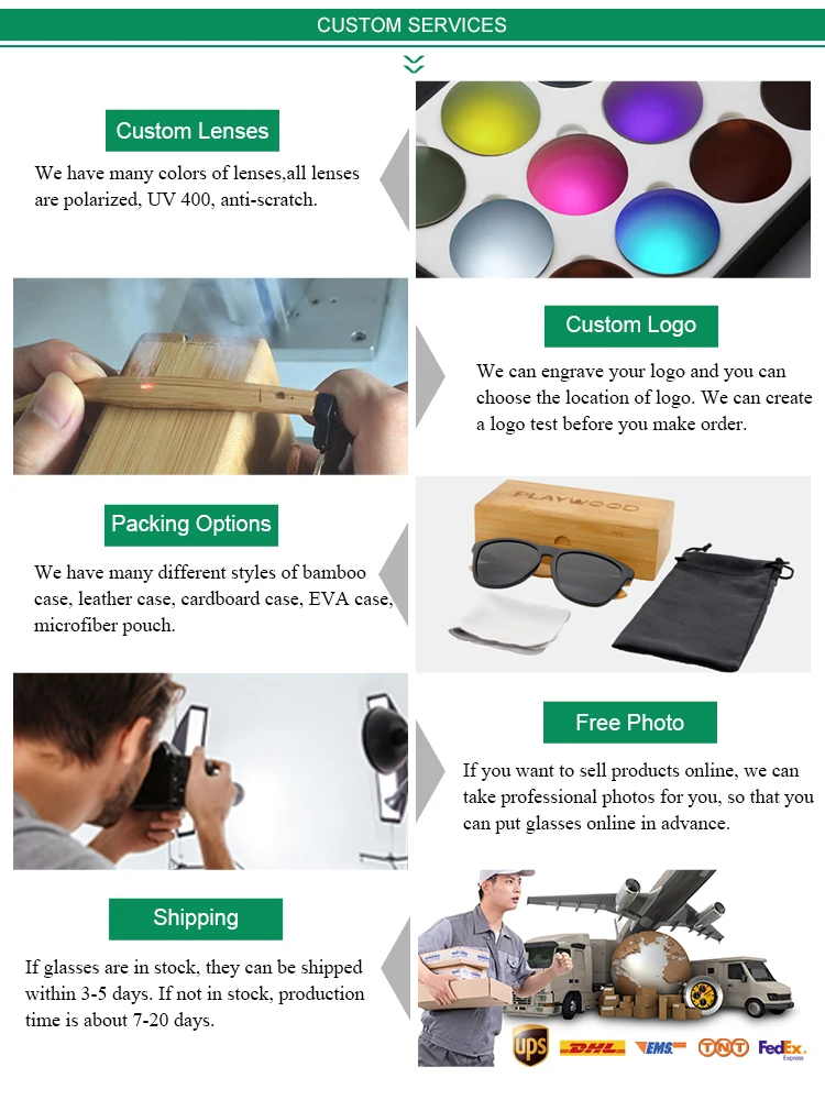Custom logo by laser | Arms wood of glasses and bamboo cases |