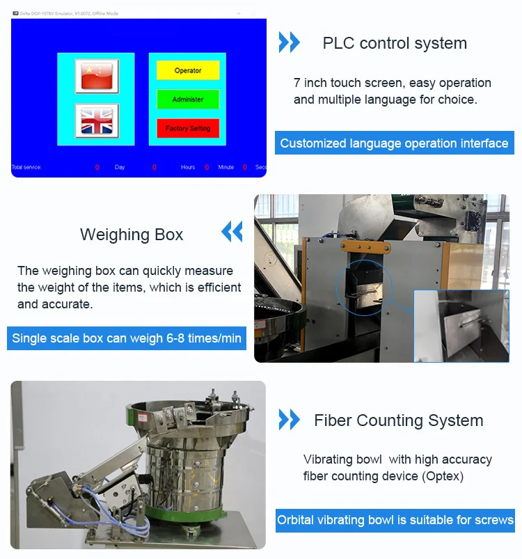 4. There are many patented technologies, such as patent of infrared fiber optics counting device (Patent No. ZL2010 20695240.5), patent of weight re-checker (Patent No. Zl201110083021.0).
