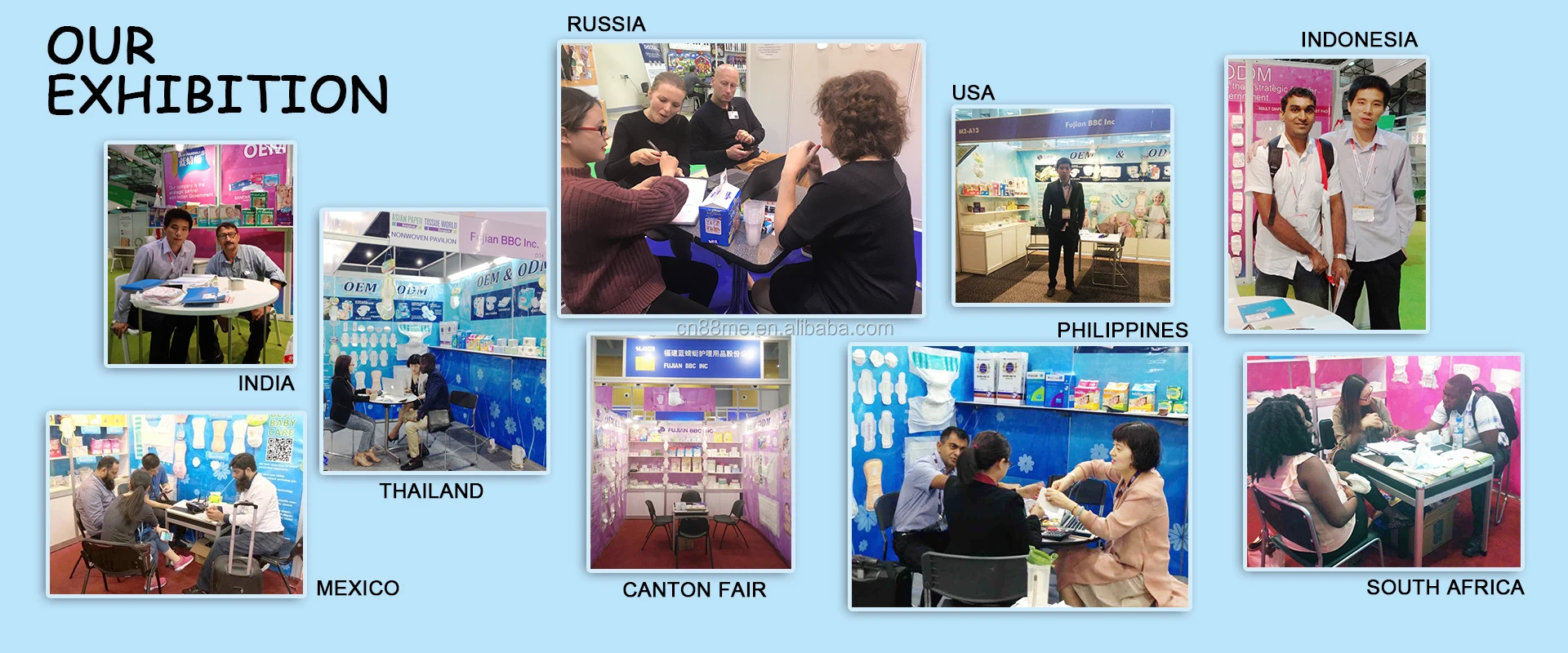 FUJIAN BBC INC. specialized in manufacturing and exporting baby diapers & pants, adult diapers, sanitary napkins, panty liner, under pads and breast pads, hygiene products raw material,machine since 2003.