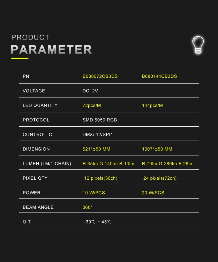 φ80mm Milky White Housing DMX LED Tube