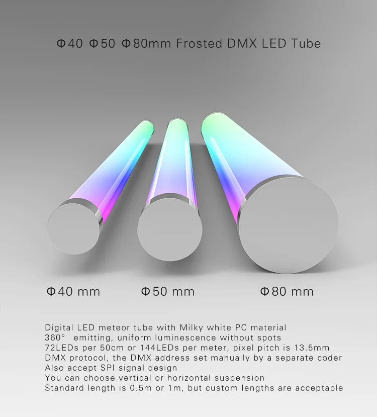 80mm Digital LED meteor tube with Milky white PC material
