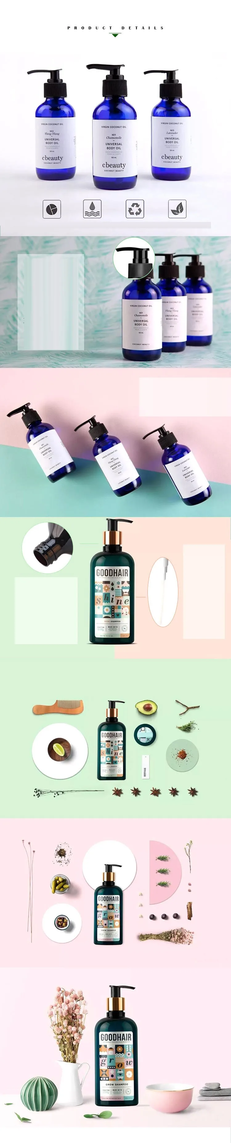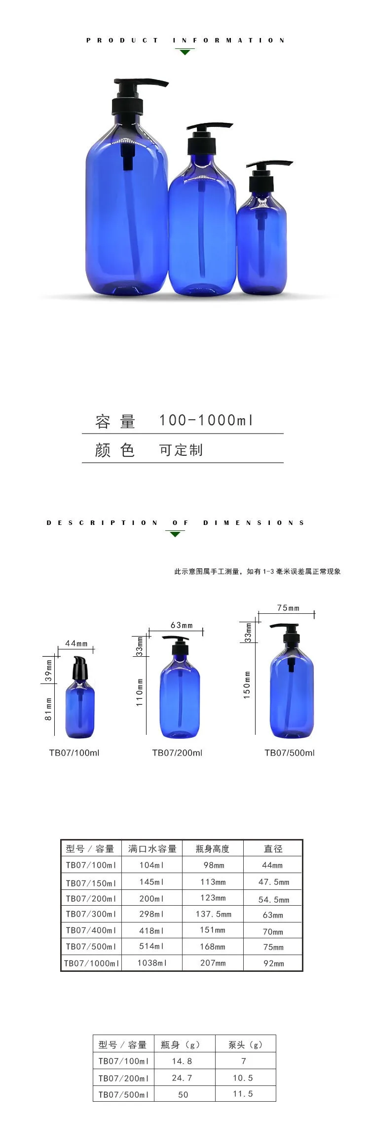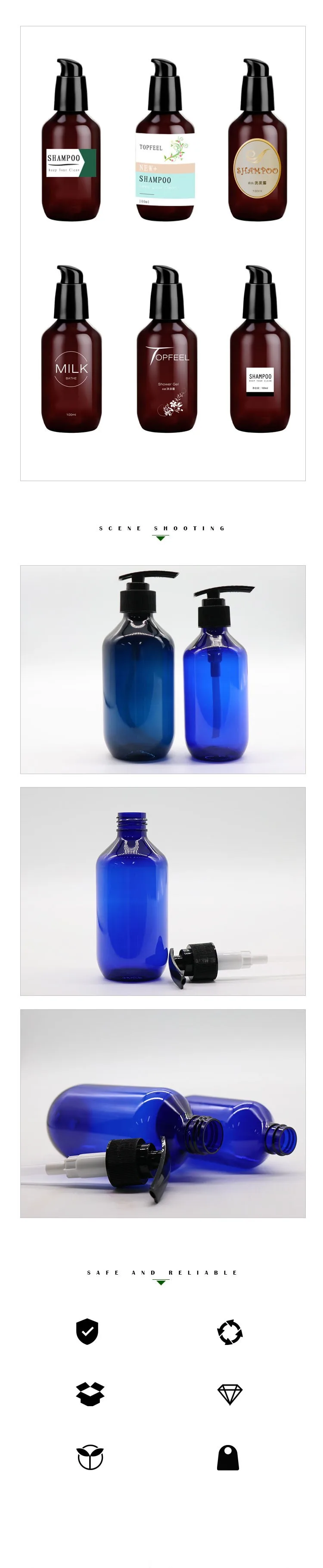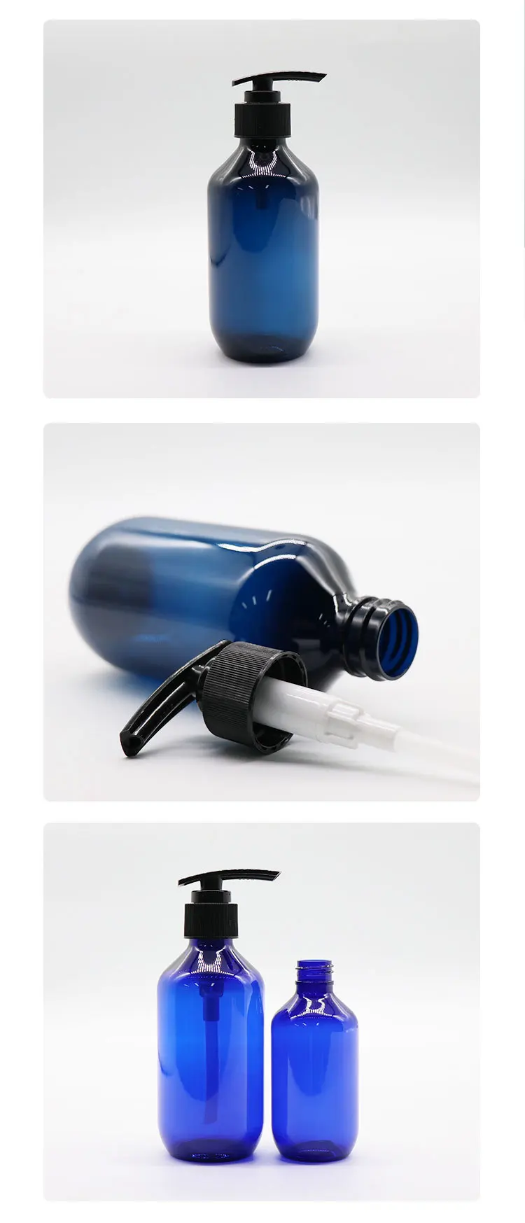 100-1000ml 1 Liter Food Grade Shampoo Shower Gel Body Wash Liquid Blue Plastic PET Bottle with Lotion Pump Spray