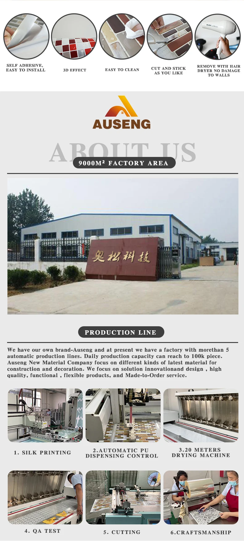 Advantage | Clear lines / self-adhesive / easy to clean / 3d three-dimensional relief / excellent raw materials / guaranteed quality / abundant inventory / price concessions / strong factory strength |