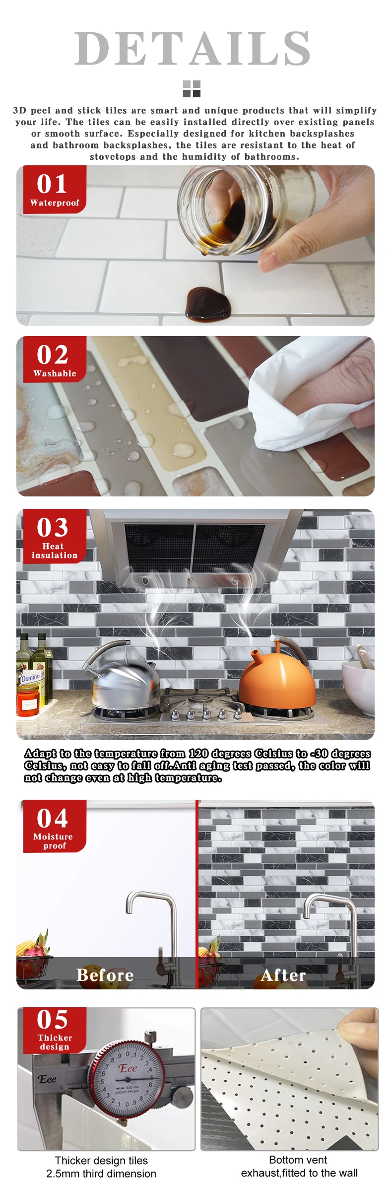 Features | Waterproof / Moisture-proof / Mold-proof / ECO-Friendly / Anti-collision / Can be scrubbed / Easy to install |