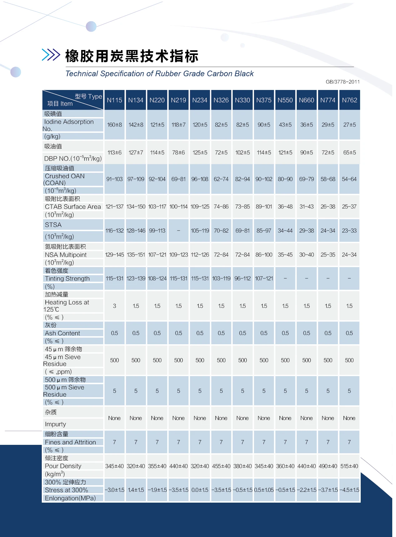 Iodine Adsorption No. (g/kg) | 82±5 | GB/T3780.1 | ||
