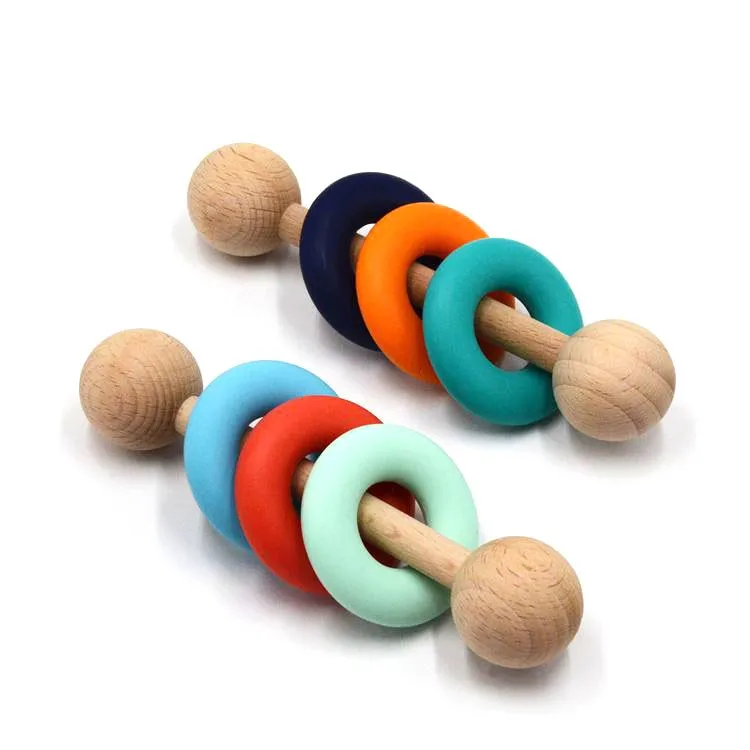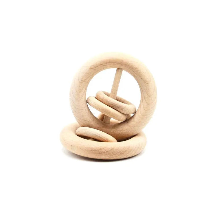 Cute Sensory Wooden Teether Baby Teething Toy Ring