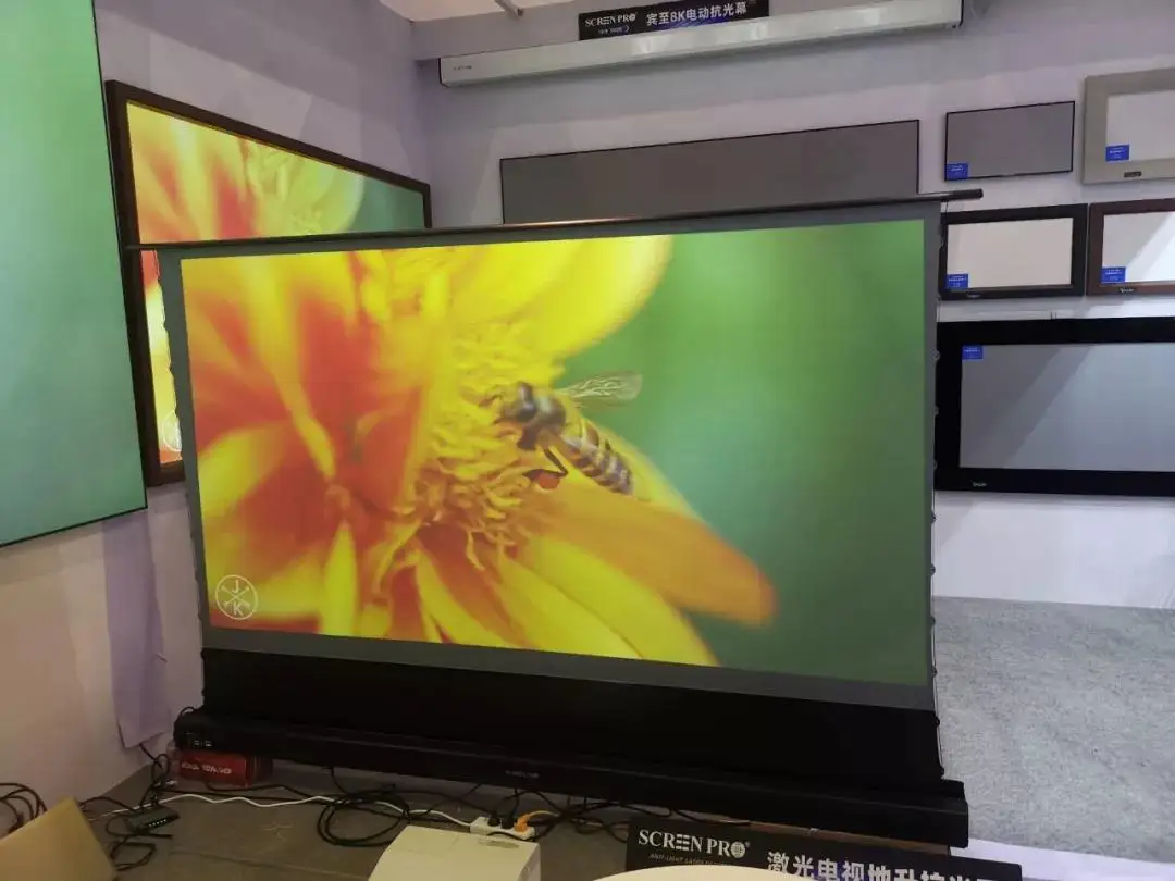 8K ALR screen produces clear, bright and vivid picture with 8K image quality even with light on or under ambient light environment. This new generation 8K ALR screen is with super big size from 84''-300'' and wide viewing angle to satisfy high end home cinema enjoyment request. The LED back light and edge free offers different viewing experience.