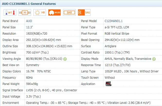 12.3 inch car show Automotive Display with 1920x720 for monitor vehicle display screen C123HAN01