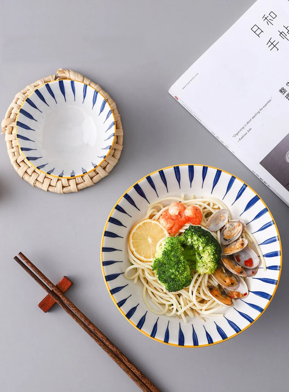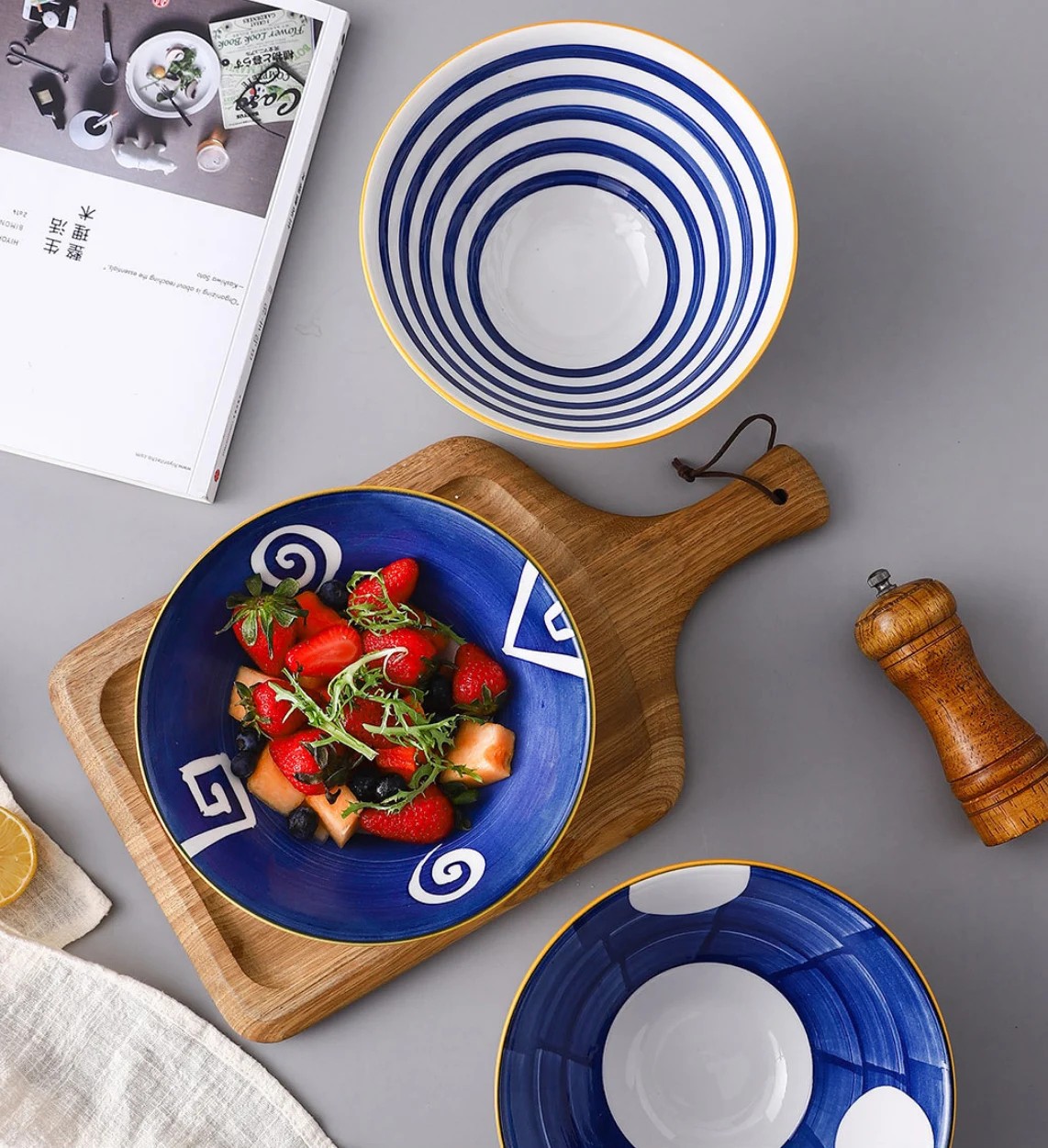 ★APPROPRIATE SIZE: The bowl' diameter is 20.2cm, height is 8.5cm, perfect for pasta, steak, salad, bread, fruits, sushi, fruit and more.