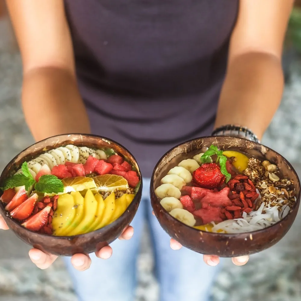 The coconut shells can withstand both hot and cold foods, contain a variety of foods such as noodles, soups, fruits, dried nuts,smoothies, snacks, etc. and you can also store spices like onions, garlic, chili, beans,…