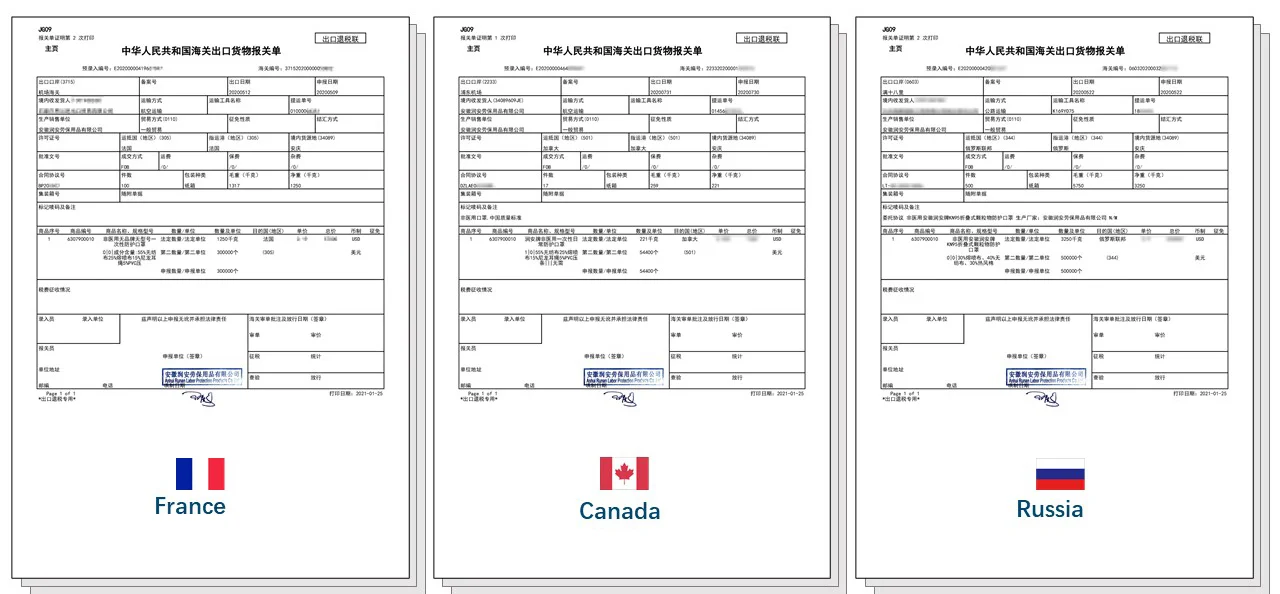 Our products have been exported to the United States, Britain, France, Canada, Russia, Japan, South Korea and other countries. products all over Europe, Asia, the Middle East, Latin America, Africa and other places. Annual Exports in 2020 Over $1.8 million All the customers are satisfied with our products and services, without a single complaint. |