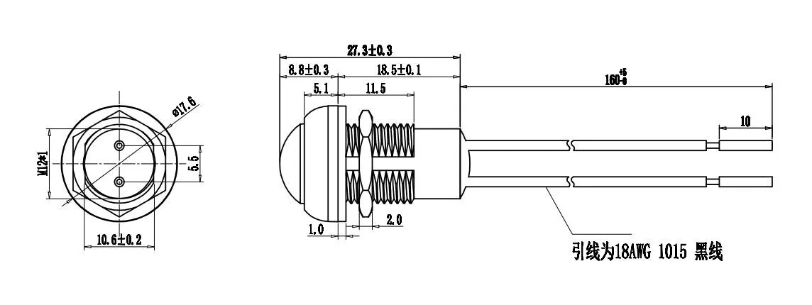 1. Operating force ≤6Nf, best range is 5Nf~6Nf , Maximum endurance 5kgf 2. Contact resistance ≤50m Ω 3. Rated current 3A , rated voltage 250VAC 4. Insulation resistance ≥100m Ω/min 5. Withstand voltage: AC 1000V(50~60hz)/min 6. Solderability: soldering iron 340°±5°/1-2s 7. Solder resistance: soldering iron 340°±5°/3-5s 8. Durability : Electrical life 50000 times, Mechanical life 100000 times 9. Protection degree: IP67 10. Base Material: Dupont Nylon PA66+20% glass fiber 11. Installation size: 12mm 12. Momentary, without light, normally open