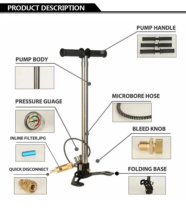 [Application]Comes with O-rings, full instructions and other complete accessories, suitable for PCP pistols, rifles and air guns, great for automobile tires, motorcycle tires, bicycle tires, inflatable kayaks, inflatable balls etc.