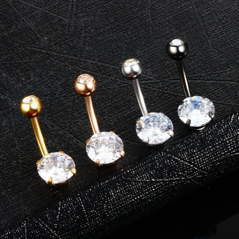 Steel Crystal Navel Ring Bar Barbell Dangle Body Piercing Nombril Ombligo Belly Button Rings Men Women Body Jewelry