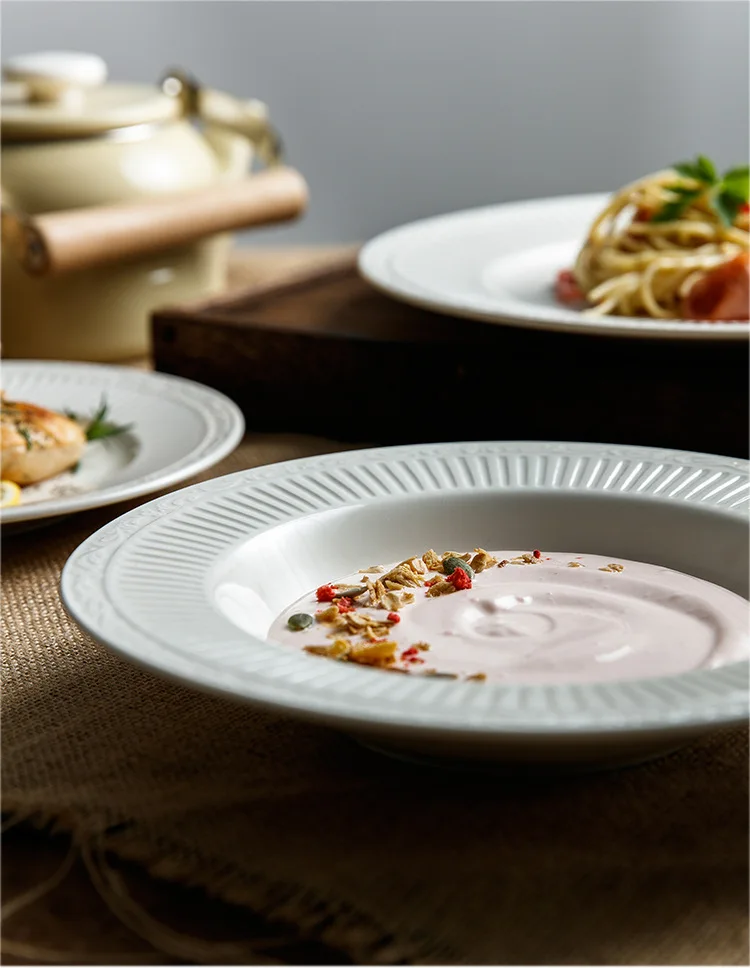 Name | romantic white embossed lace design luncheon serving italian ceramic plate for wedding party porcelain steak dinner plate |