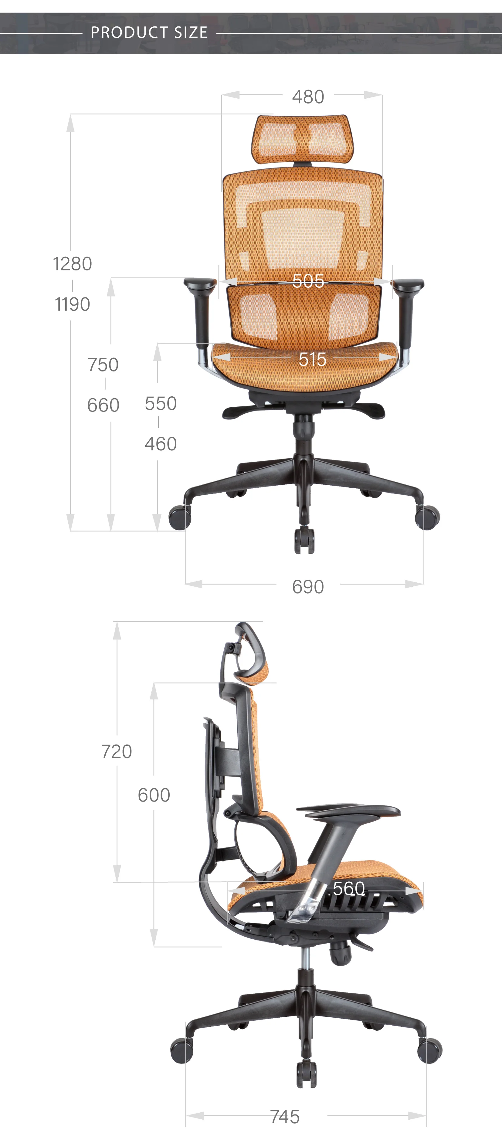 Product Dimensions | W690 x D745 x H1190 - 1280 (mm) |