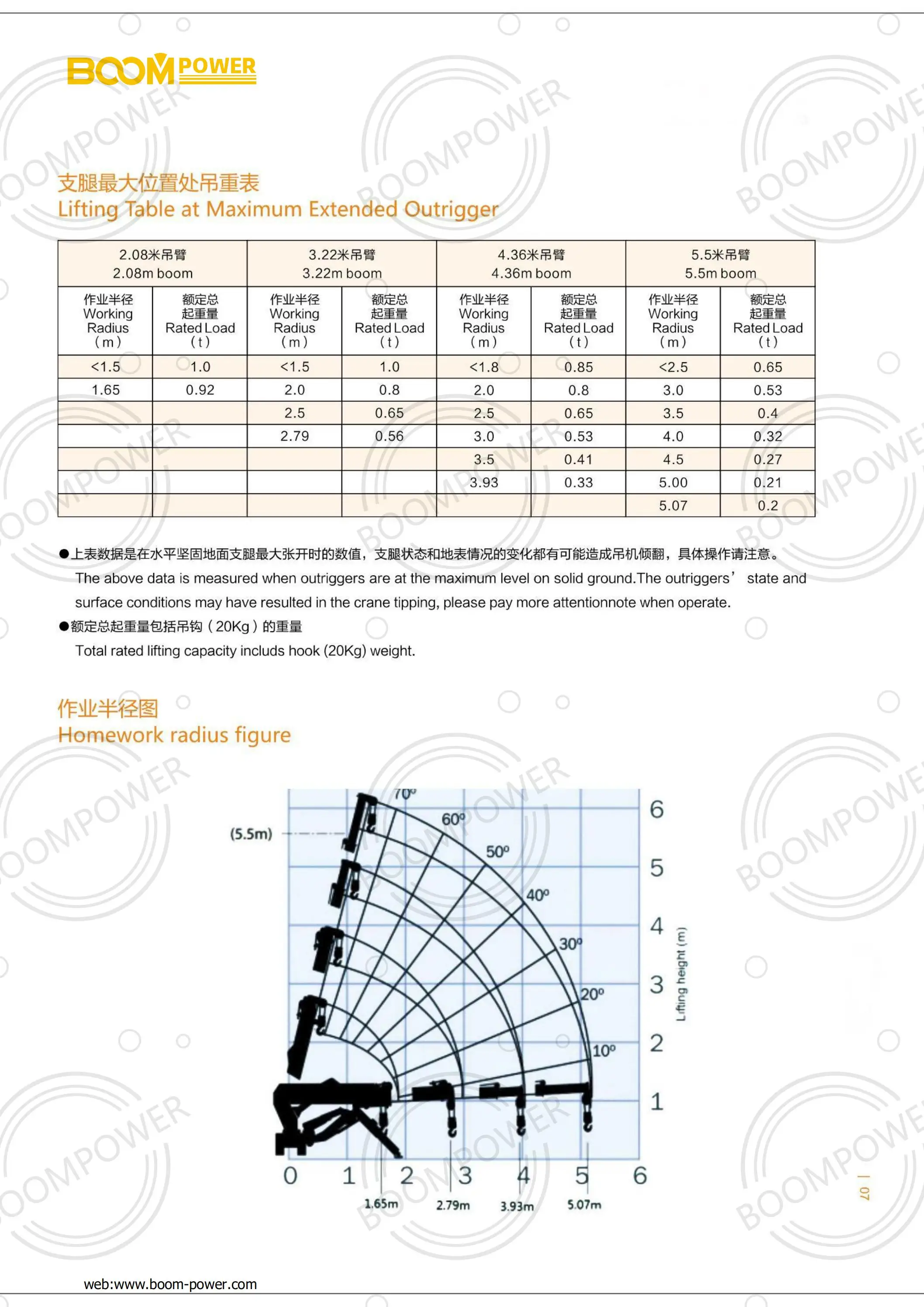 2.08m boom | 3.22m boom | 4.36m boom | 5.5m boom | ||||||||