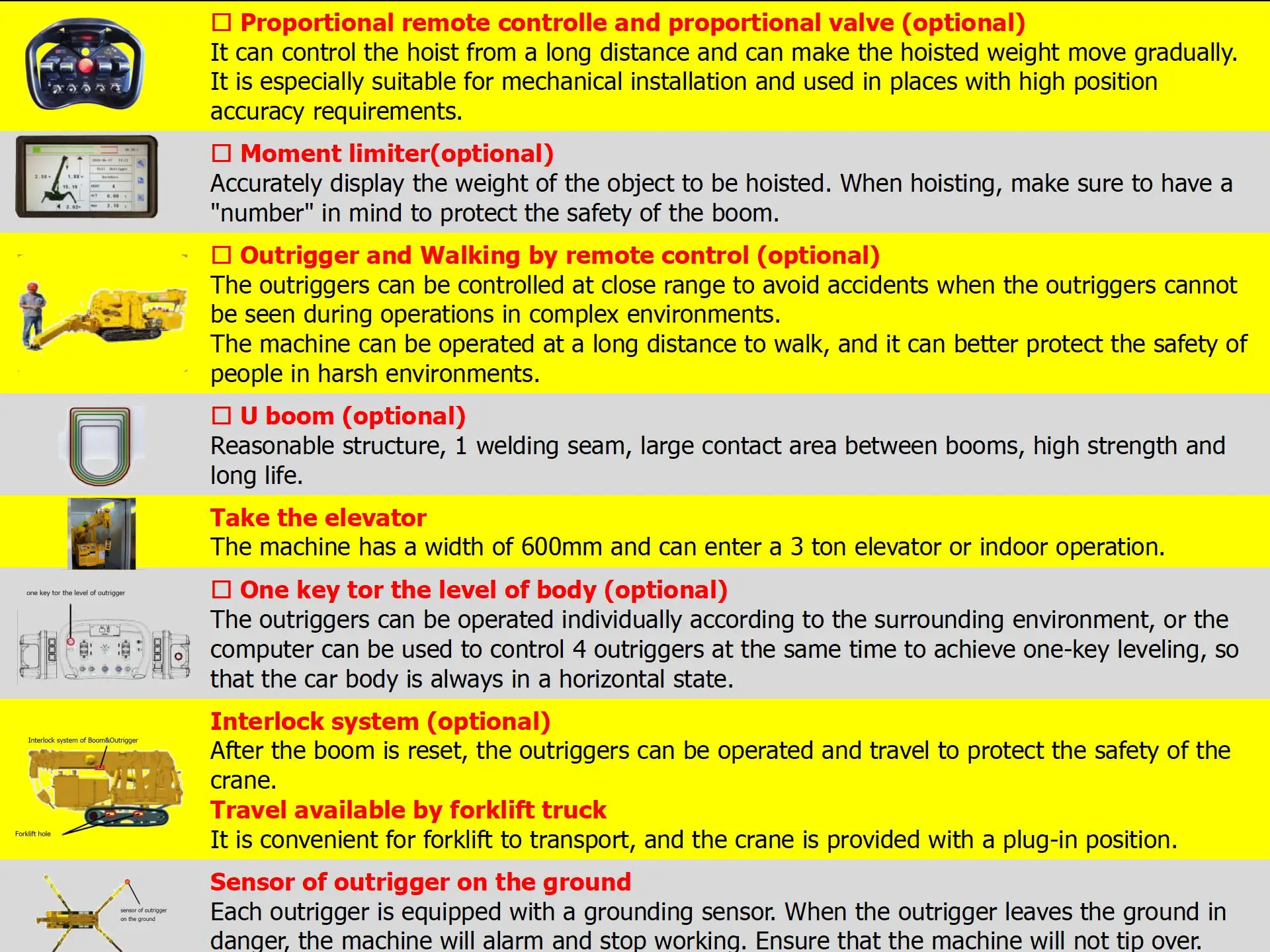 Safety Devices | Outrigger automatic detection alarm^ levek Intelligent levelingx Emergency stop button | |||