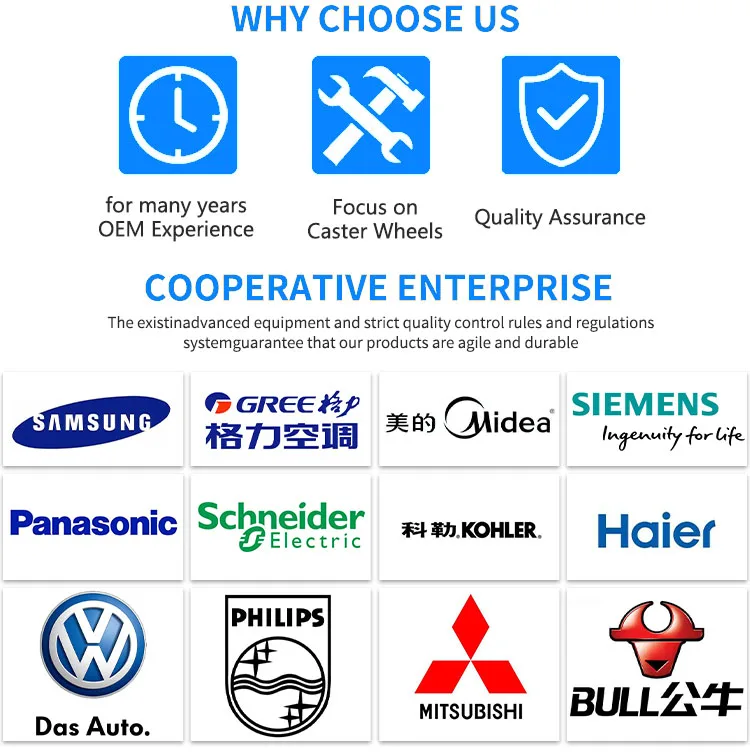 A: We are manufacture. Our factory has been specializing in all kinds of caster wheels since 1997 and our factory covers an area of 35000 square.