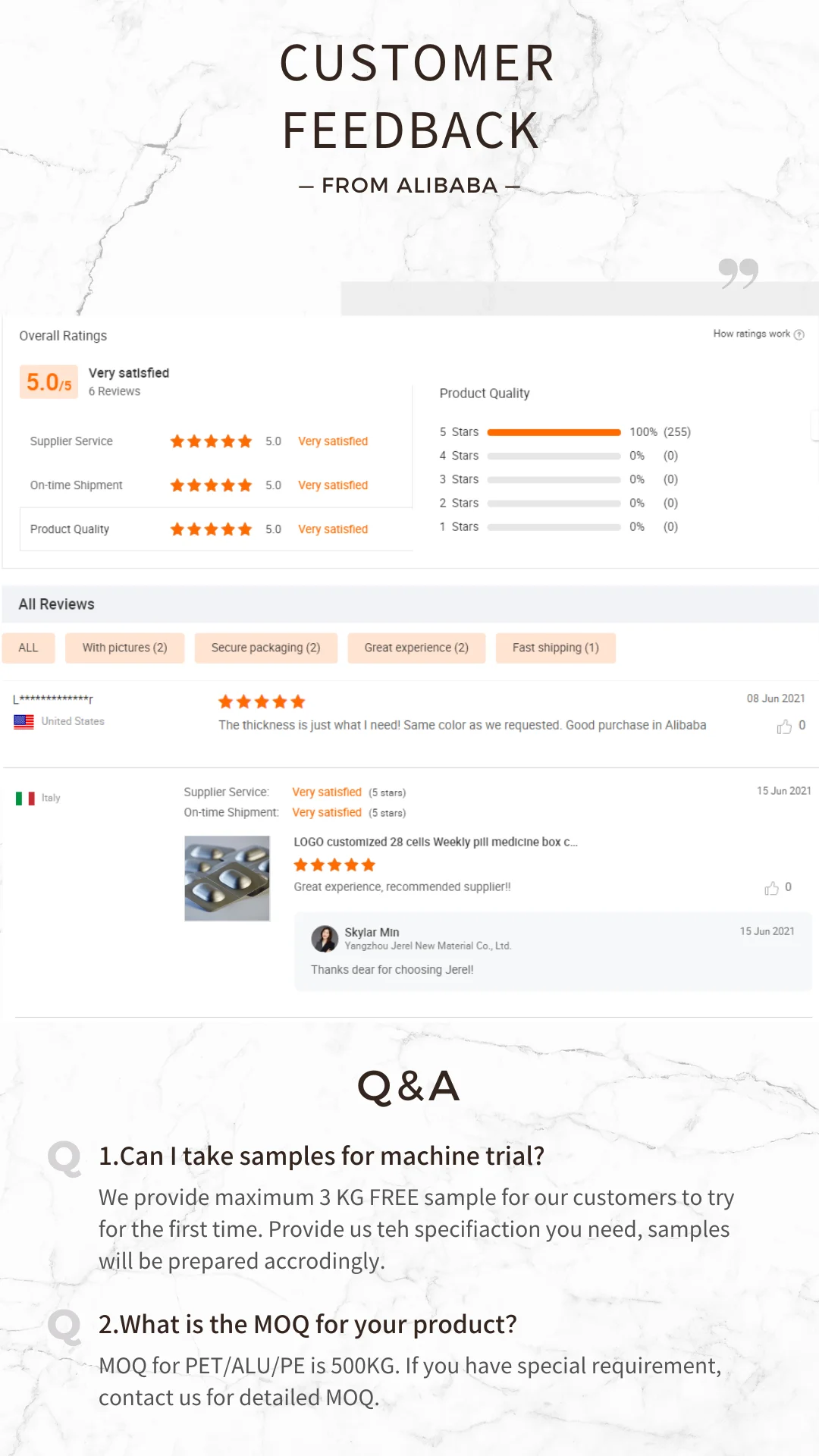 MOQ | 200kg for each kind of product |