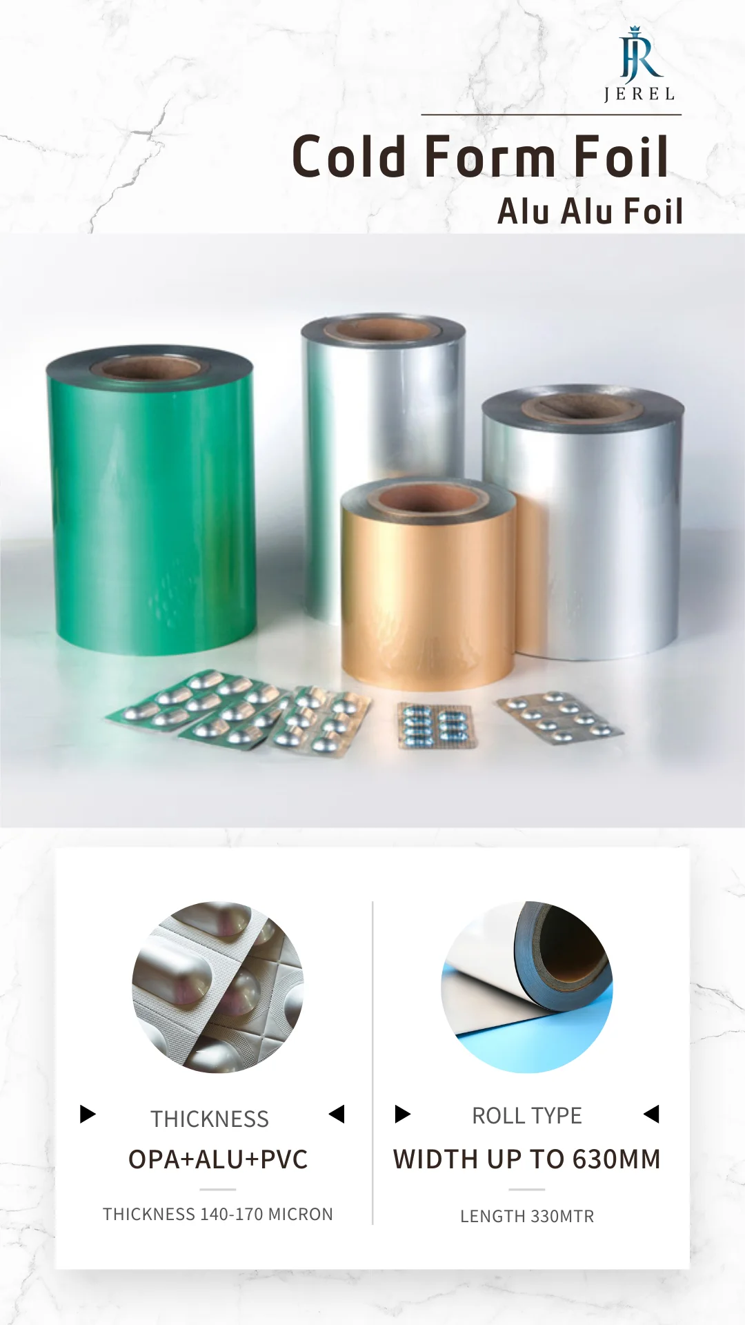 FEATURES | With Good ductility, Suitable for 00# TO 3# capsules and small and dense tablet packing. With Good adhesiveness,3 layers of high adhesion strength, machinery use or after a period of time not stratified. With good sealing property, without sand hole or pinhole, it will not frequently detect alarm in infrared online device Wider practicability, low speed and high speed machine can be used. |