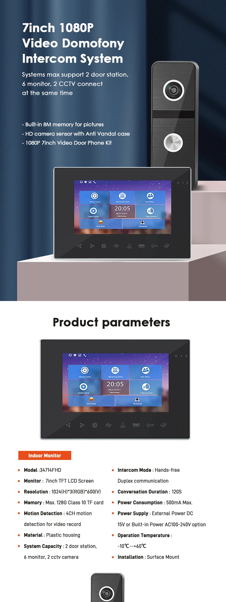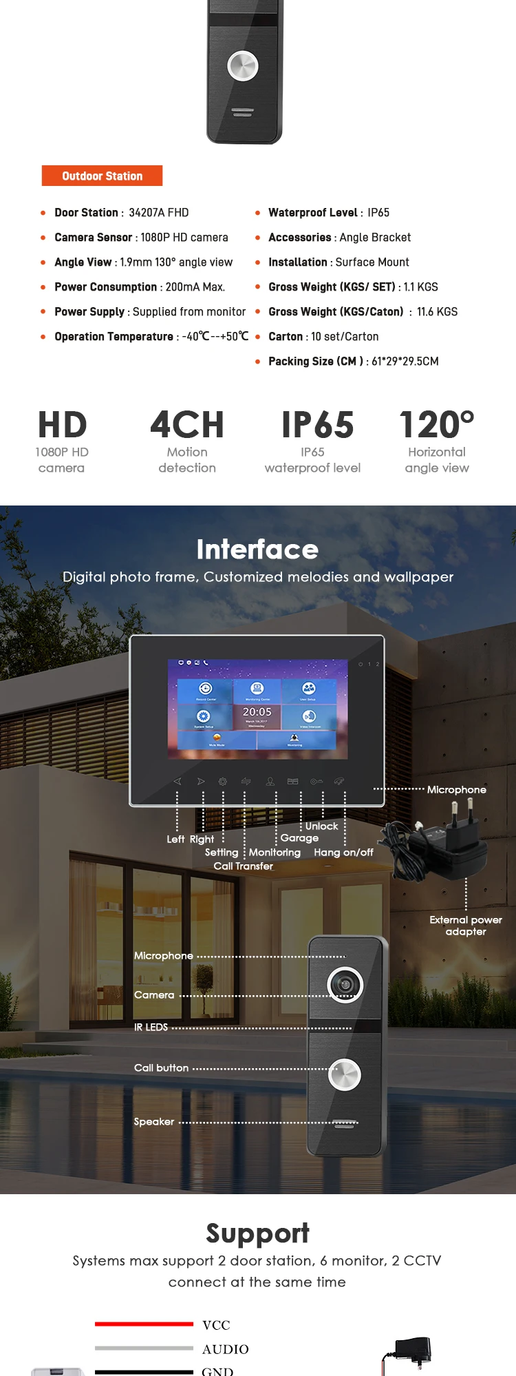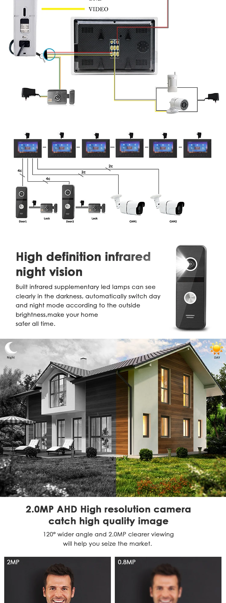 2 door station, 6 monitor, 2 cctv camera |
