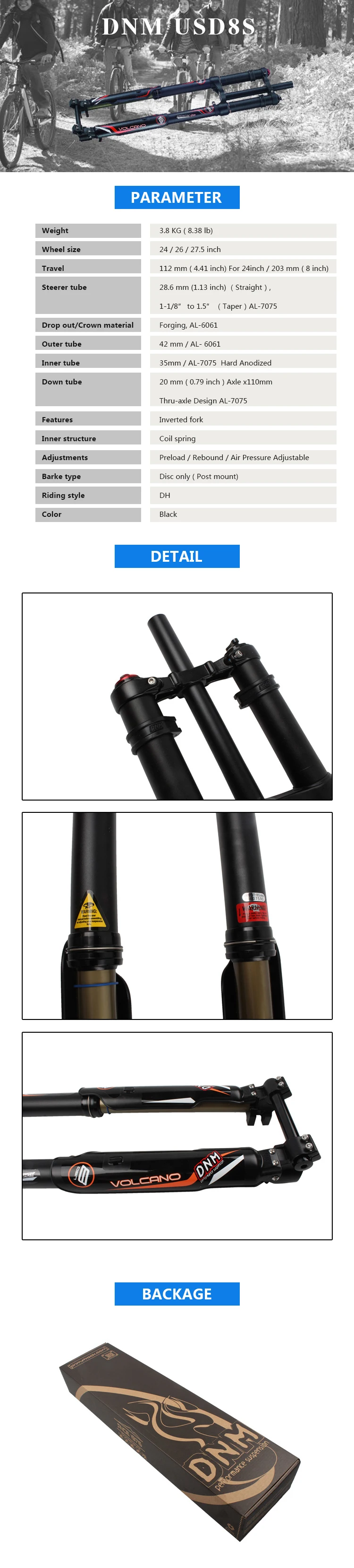 USD-8S has been tested by many professional bikers. We learned from the testing results and tun these experience to this new air structure version USD-8S. It is using whole new damping system with air support. Provide nearly ligher 20% than our USD-8 and better performance.