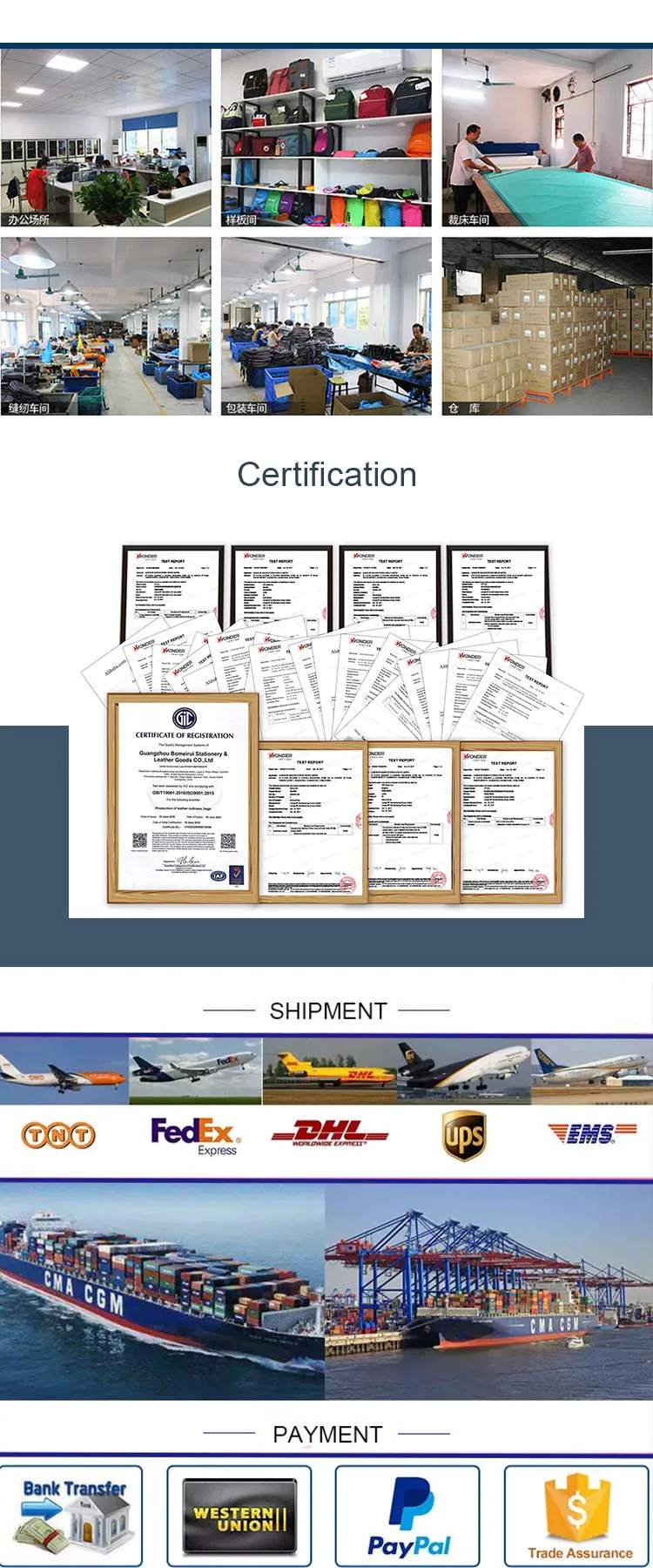 After price confirmation, you can require for samples to check our product’s quality. If you just need a blank sample to check the design and quality. We will provide you sample for free as long as you afford the express freight.