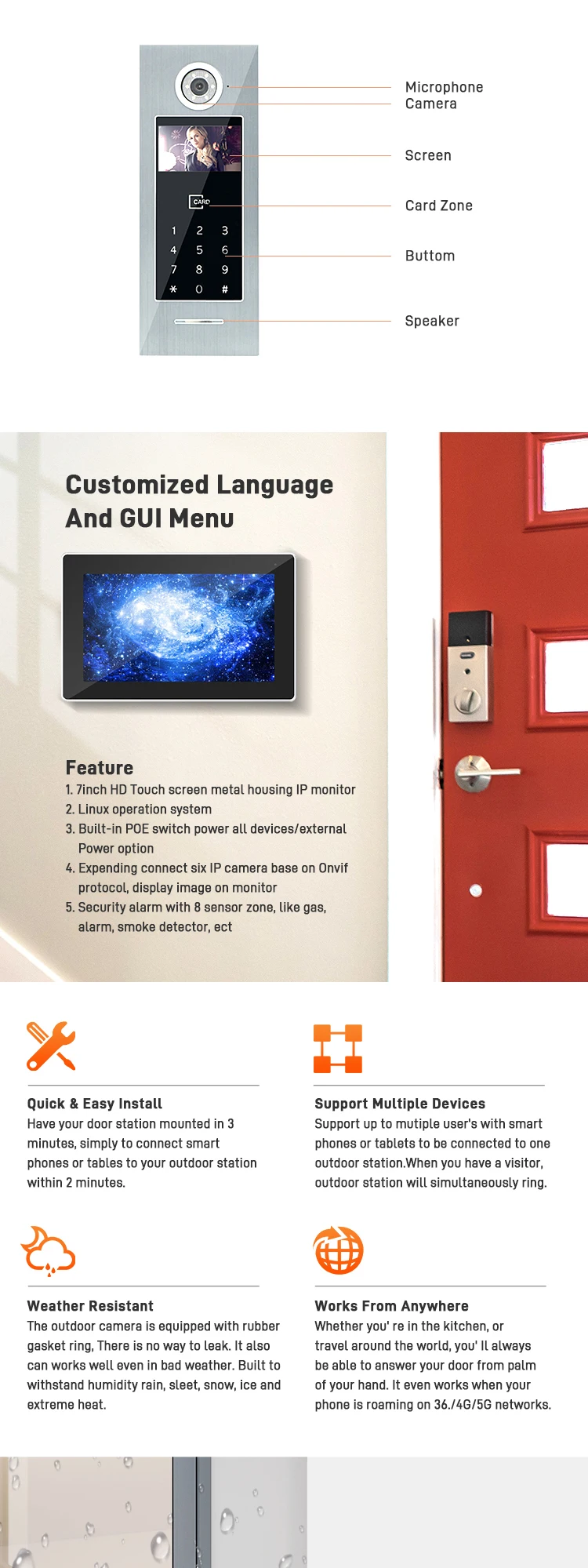 Best Selling Products Multi Apartment Video Intercom System Wifi Touch Screen Room To Room Intercom SystemDoorbell