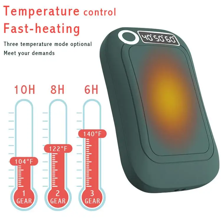 2. It supports long-lasting fever-fast fever in 3 seconds. There are 3 kinds of display temperature of 40℃/50℃/60℃, you can adjust the temperature according to your needs, 10 hours at 40℃, 8 hours at 50℃,,6hours at 60℃, 10 hours at 60℃, the most hand warmers on the market can only work for 4 hours. A single full charge takes 3-6 hours.