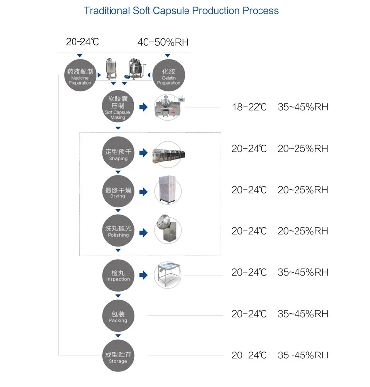 Two sides gelatin film linear conveying, no need adjust, production stable.