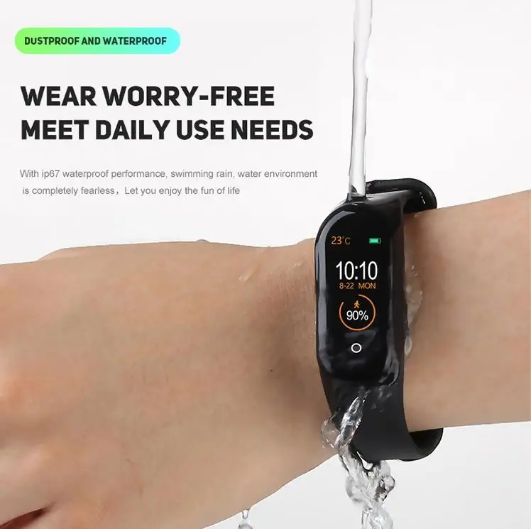 Other Functions | Heart rate monitoring, blood pressure monitoring and blood oxygen monitoring smart bracelet M4 fitness tracker can also monitor sleep,count your steps Call reminder,alarm clock reminder, sedentary reminder Smart band can also send message and restore it |