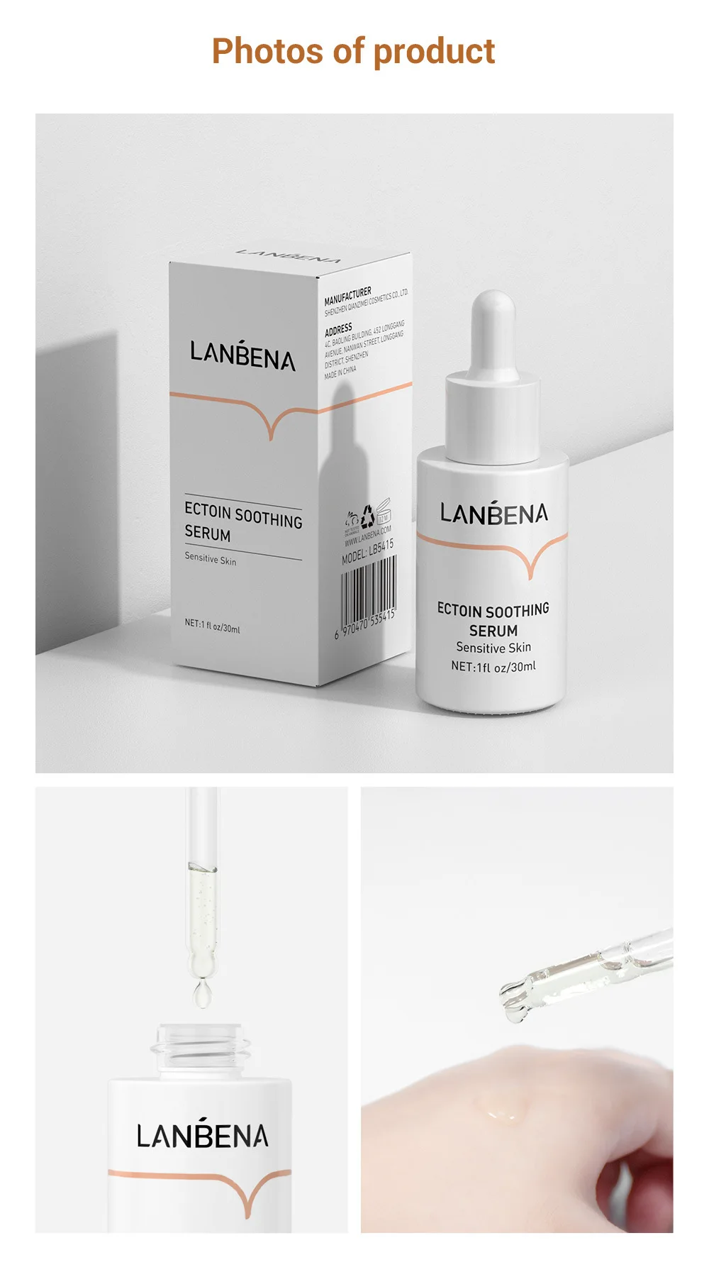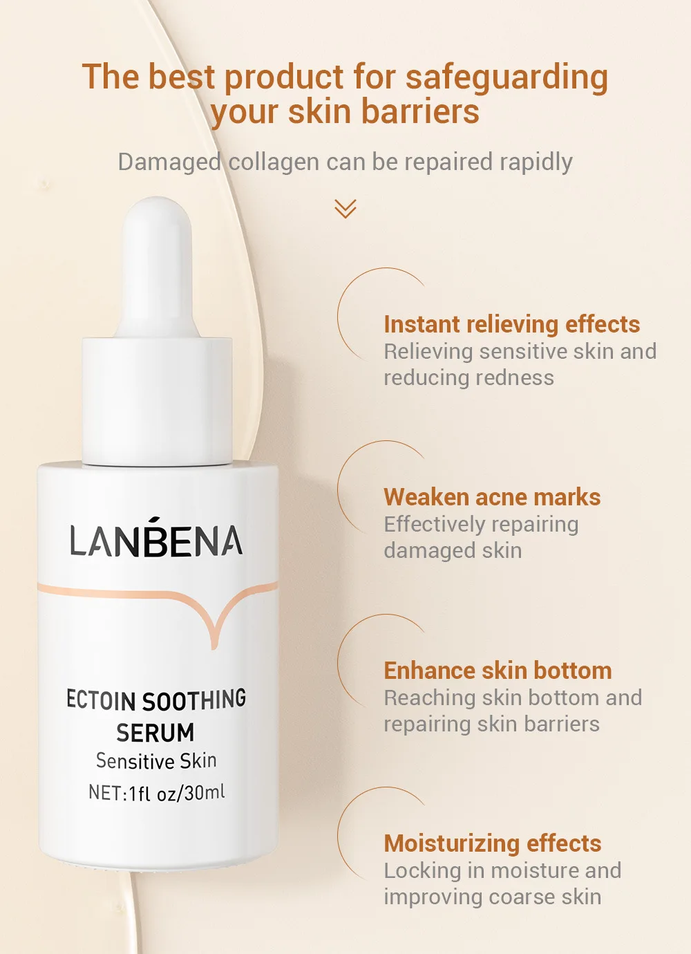 Product Name | LANBENA Ectoin Soothing Serum Anti Allergic Enhance Skin Bottom Repairing Acne Marks Damage Moisturizing Sensitive Skin 30ml | ||||||