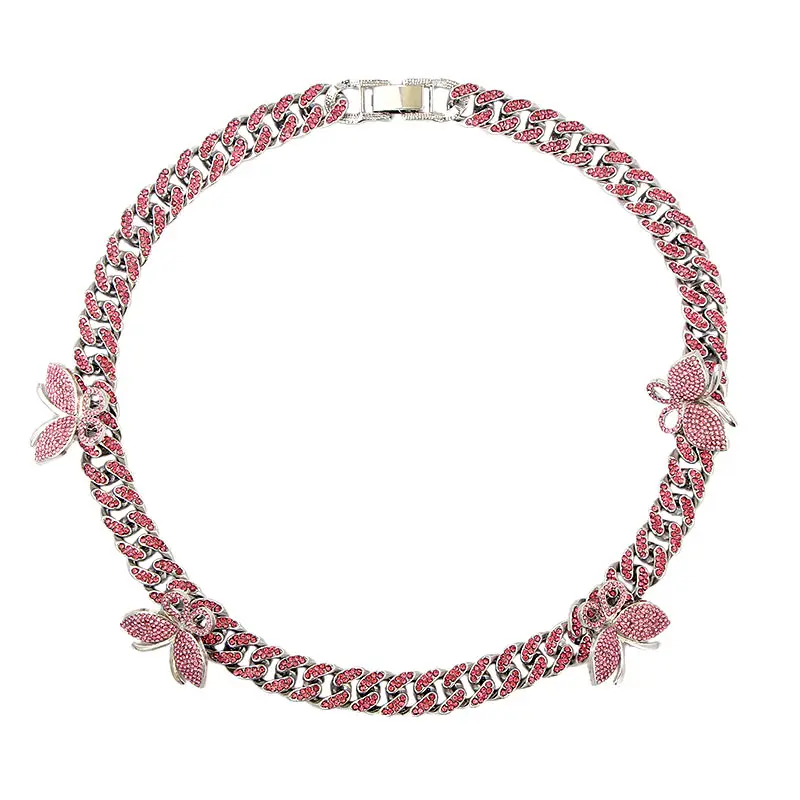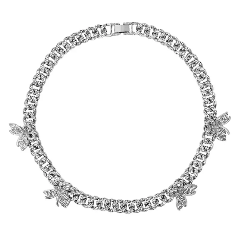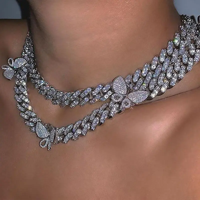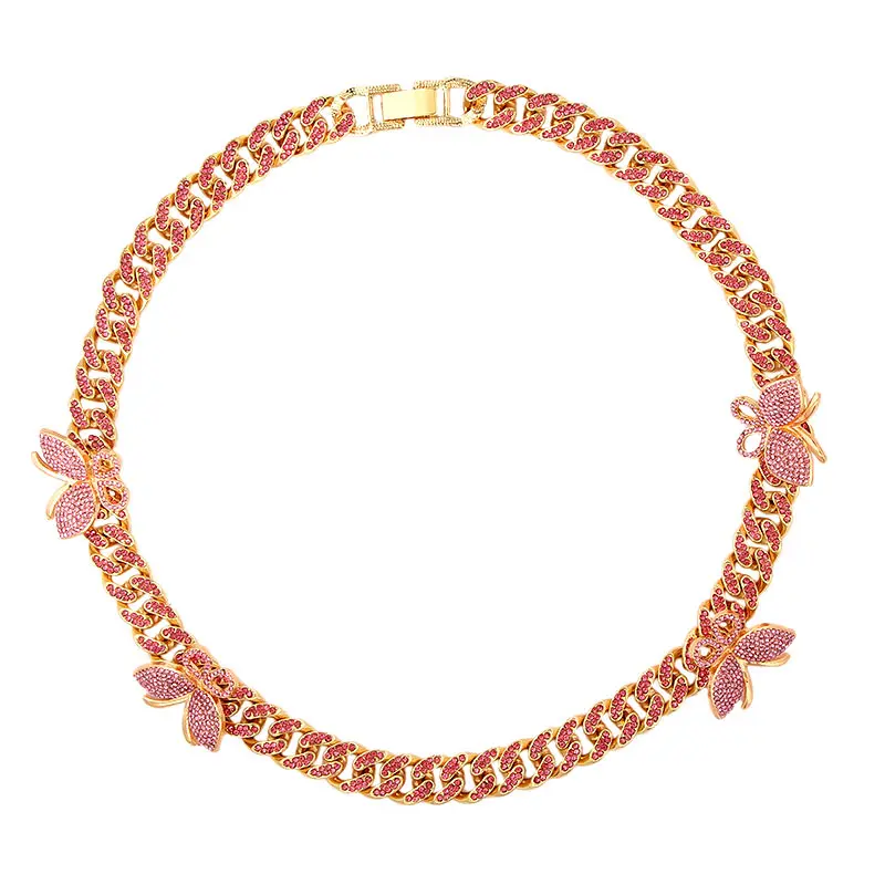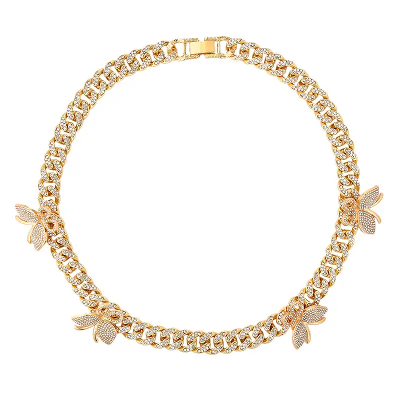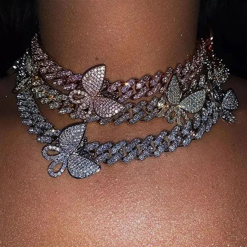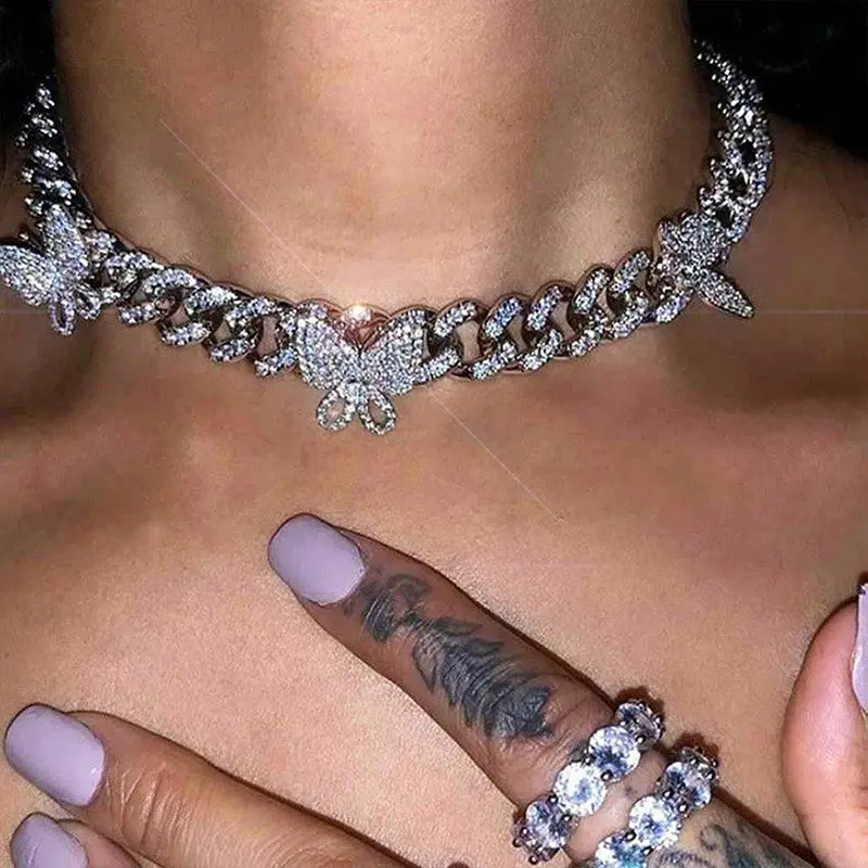 Products name | 2020 Women Men Hip Hop Luxury Iced Jewelry Personality Gold Plated Crystal Butterfly Choker Rhinestone Cuban Link Chain Necklace |