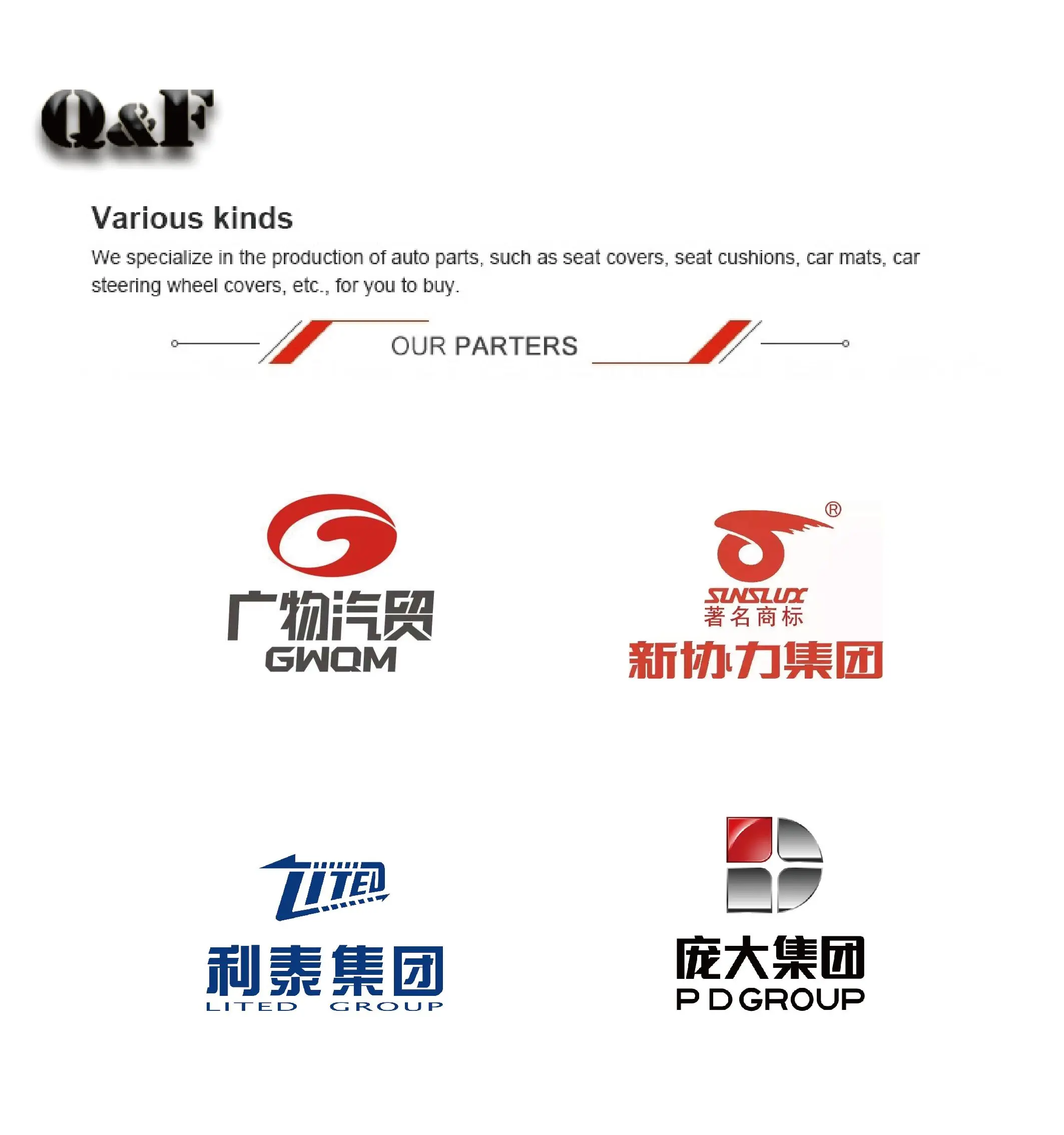 Guangzhou Qifeng Automotive Supplies Co., Ltd. adheres to the principle of car owner's health, beautifying the environment inside the car, and improving driving pleasure. Founded the "Q&F" automobile interior brand with the design concept of "care for health and create life". After more than ten years of development, the "Q&F" products have covered nearly 30 provinces, municipalities and autonomous regions in China, with hundreds of agents, 4S groups, 4S stores and other partners. Products are exported to Europe, America, Middle East, Southeast Asia and other countries and regions. It is currently one of the best manufacturers and suppliers of automotive seat cushions and fine products in the automotive supplies industry. It is also the first batch of enterprises in the automotive supplies industry to create natural, comfortable, ecological and healthy products.