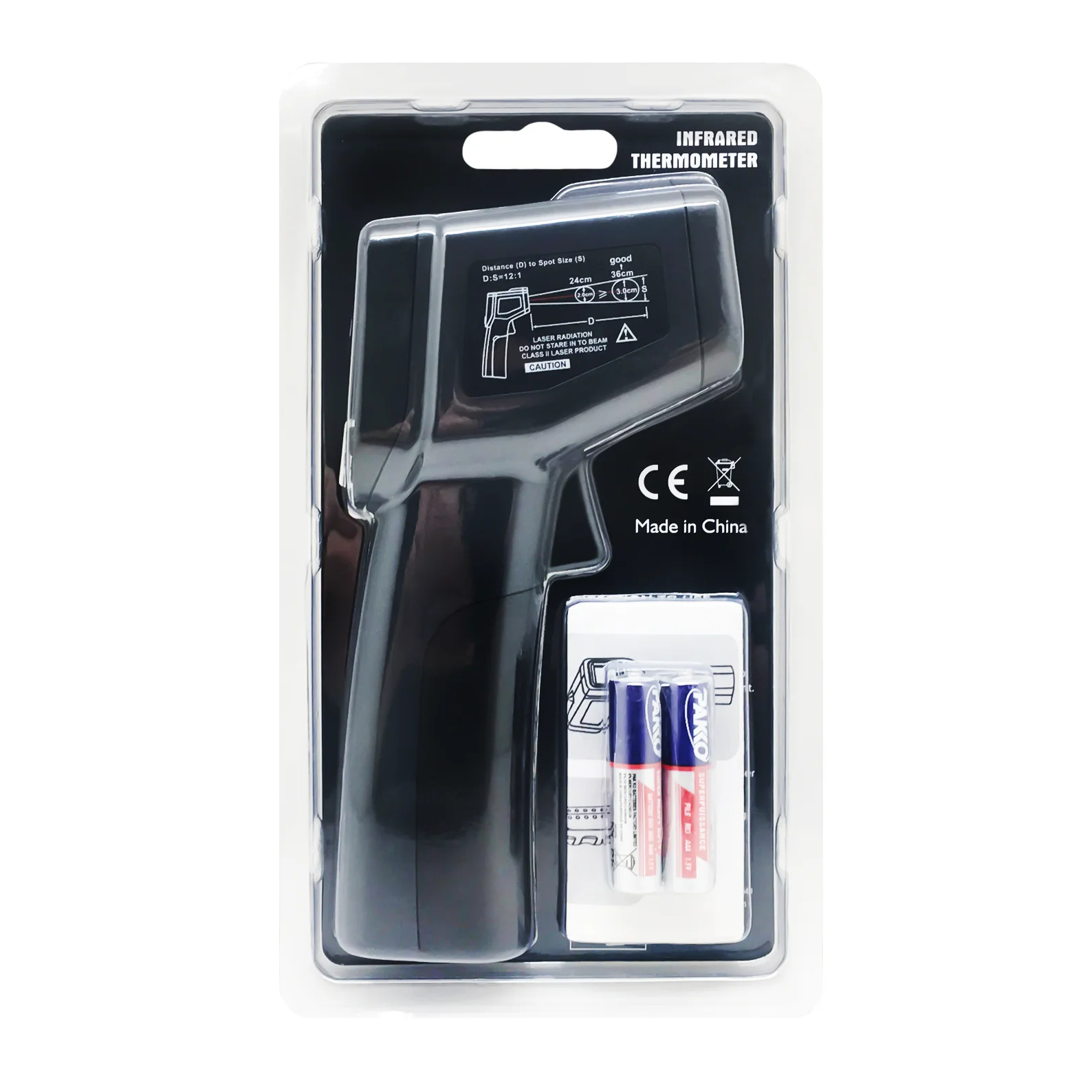 This infrared thermometer is used for measuring the temperature of the object's surface, which is applicable for various hot,hazardous or hard-toreach objects without contact safely and quickly. This unit consist of Optics, Temperature Sensor Signal amplifier, Processing circuit and LCD Display. The Optics collected the infrared energy emitted by object and focus onto the Sensor. Then the sensor translates the energy into an electricity signal. This signal will be turned out to be digital shown on the LCD after the signal amplifier and processing circuit.