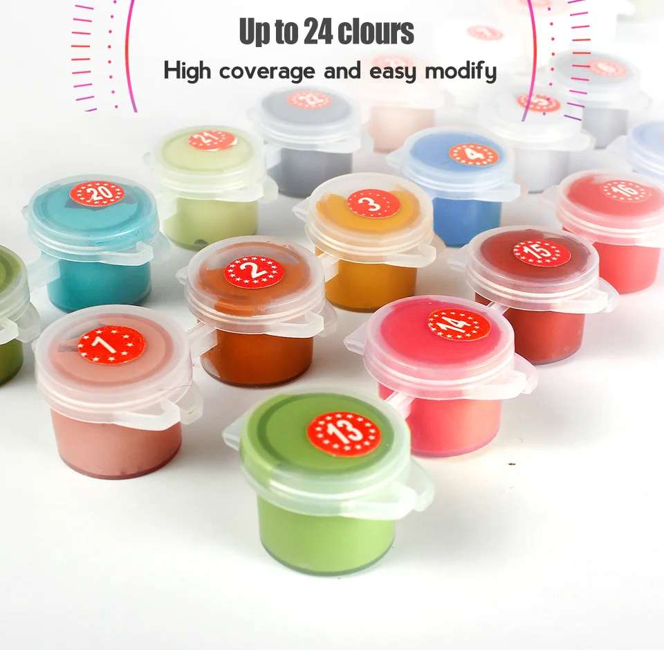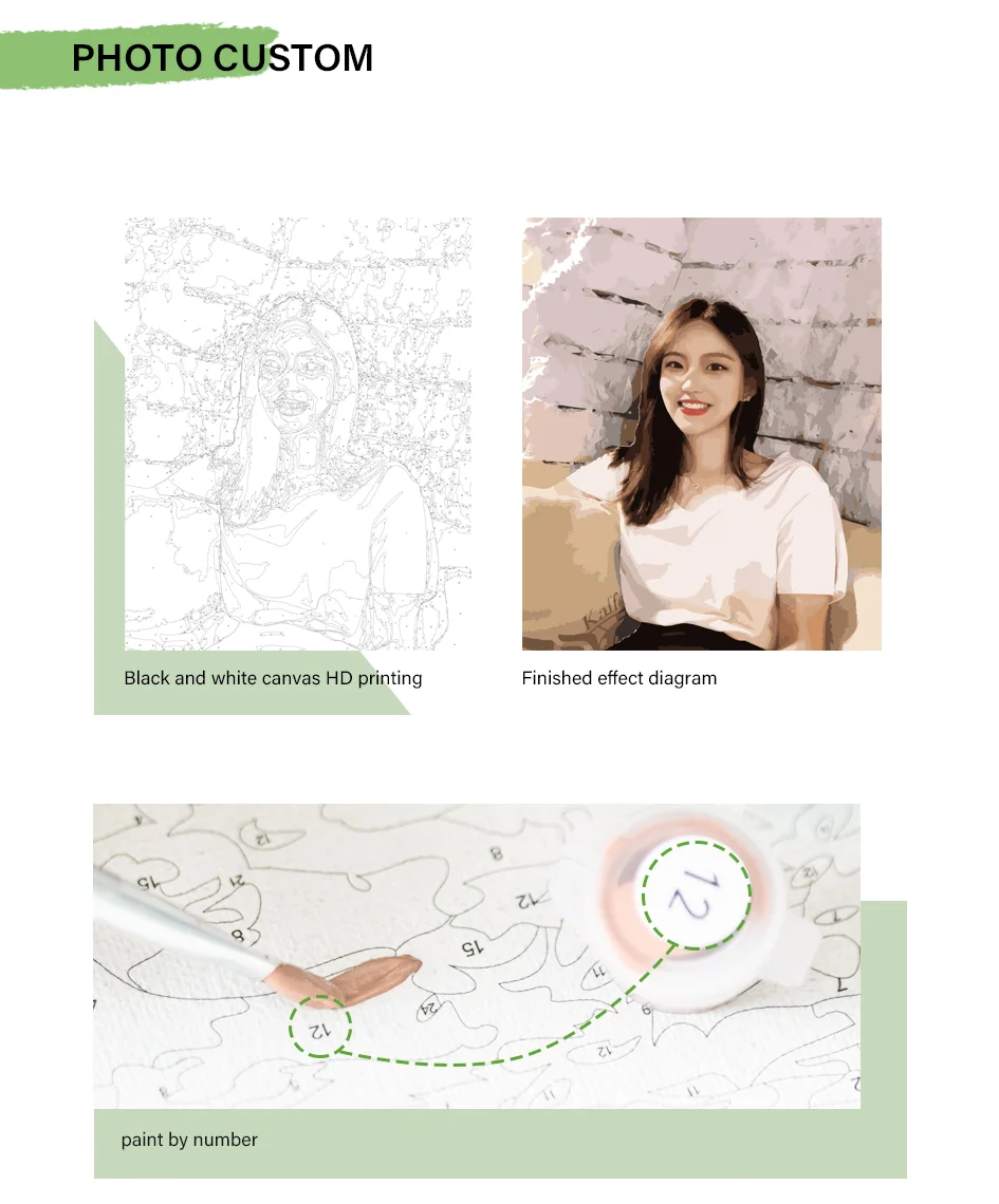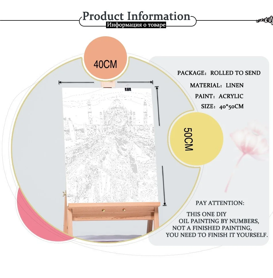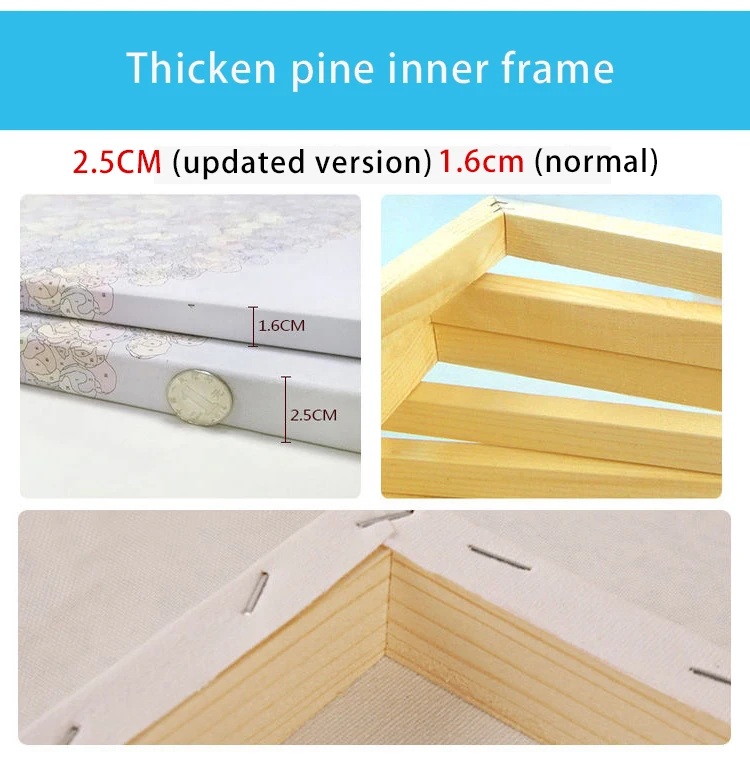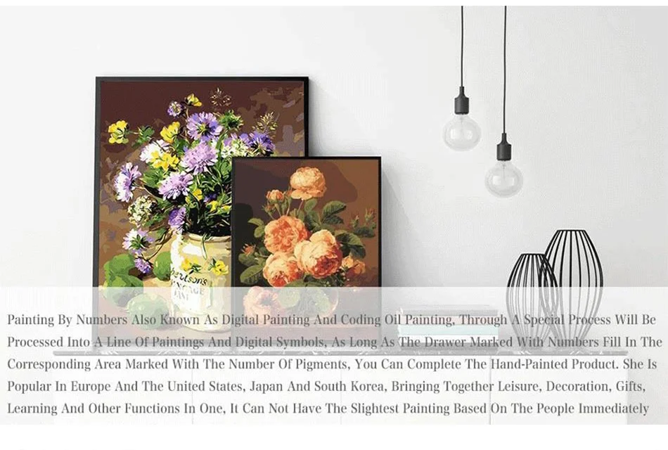 About frame:We sell the diy oil painting by numbers without Frame Tools: 1 x Canvas/3 x Paintbrush (1big,1middle,1small)/1 set paints/2 x Non-trace hook/ 2 x screw Attention: This not a finished painting you finish it yourself Pay Attention: If there is a bit dry in the process of painting , can be into 1 to 2 drops light agent or water (no more drops)in the paint, stir well after. | ||