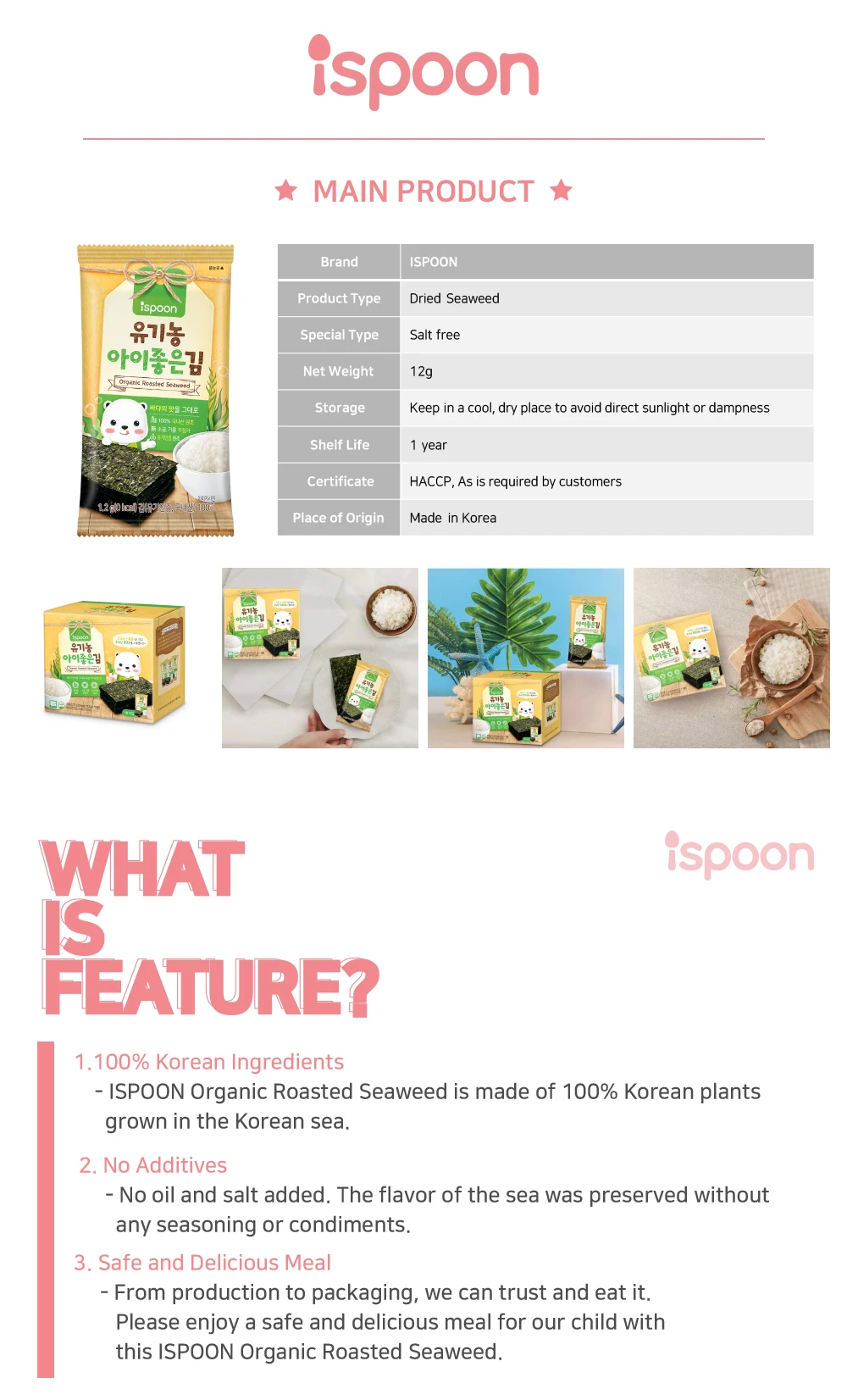 Korean Original Food Organic Baby Food Roasted Dried Seaweed Nori Laver Snack