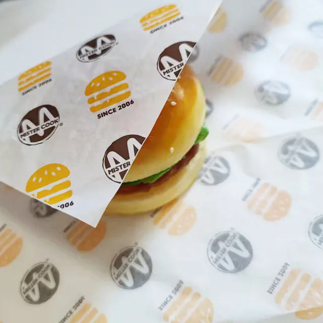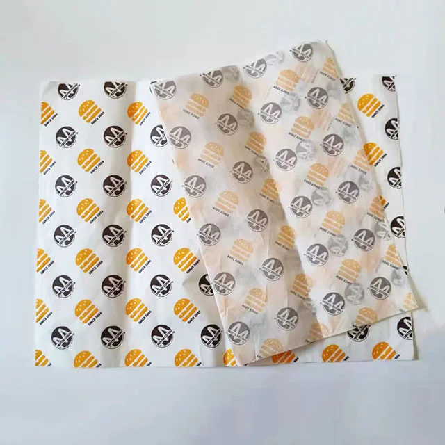 Custom printed foil 40 gram kraft wax white craft food packaging grease proof burger wrapping paper