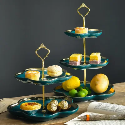 European Luxury Ceramic Fruit Cake Plate Tray Classical Display Decoration Snacks Cupcake Stand Holder