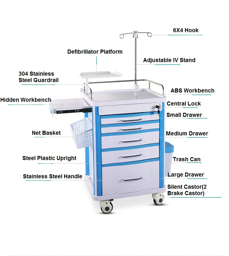 Product Name | ABS Emergency Trolley Cart with 5 Drawers |