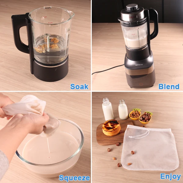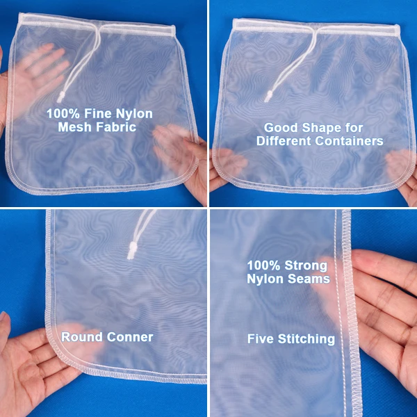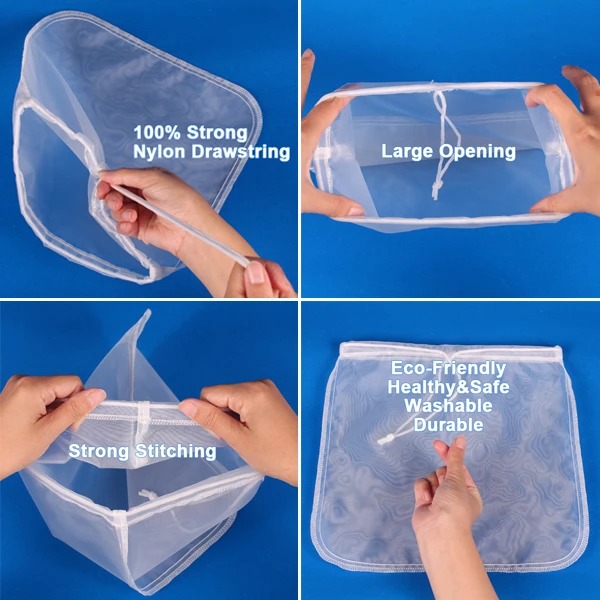 1. Most durable & strongest reusable. 2. Easy squeezing. 3. Hanging loop. 4. Multi-purpose, making nut milk, juice, coffee, red wine, cheese, etc. 5. Size, shape, packaging all can be customized. 6. LFGB certificate is avaliable. 7. BPA free. 8. FBA shipping, directly to Amazon.