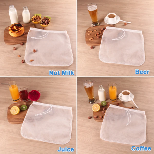 The nut milk bag can not only be used to make nut milk, but also be used to make cold brew coffee, yogurt, celery juice and other kind of juices. It is also a cold brew coffee bag, just put coarsely ground coffee into the bag, and immerse the bag into a jar or pitcher fulled with pure water, then put the jar into a refrigerator for 12-24 hours, take the bag out and wash it for next use, and enjoy your cold brew coffee