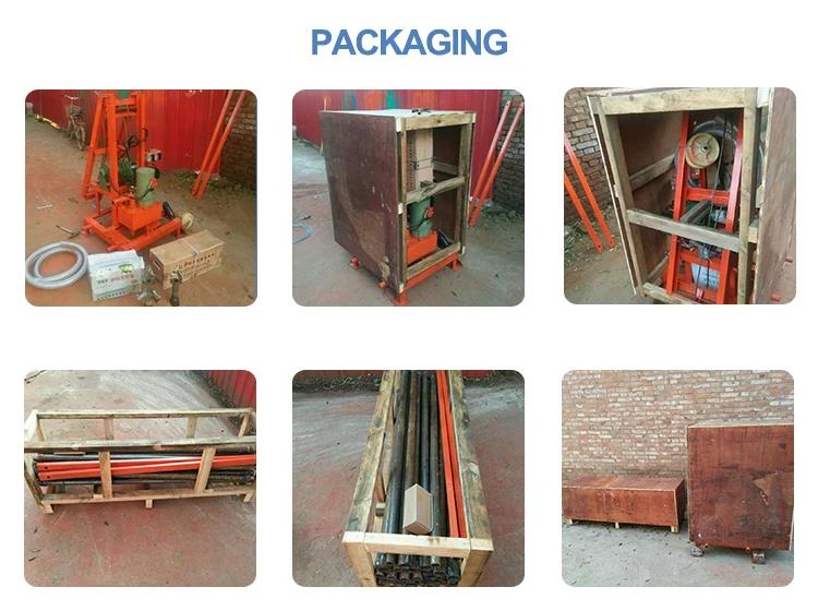 Its advantages are: small power, large torque, small size, portable, high efficiency, easy to operate, low noise To adapt to various environmental terrain drilling machine. The machine is easy to use, simple operation, fast into the hole and 10 meters per hour, the noise is small, operation is extremely simple, single to operation, mechanical dump drill pipe, hit 100 m at Wells, for example, drill pipe removing, on average, about 10 minutes, and mobile and convenient, completion of drilling operation, a single operation to complete moving work.