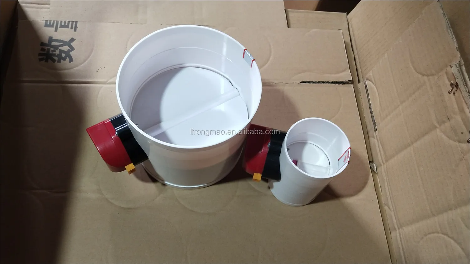 * Voltage: AC 24V 220V DC 12V * 1. This damper is suitable for controlling the air volume from full flow to shut off * 2. The damper is constructed with plastic and come with plastic pipe. * SIZE(mm) * Inside